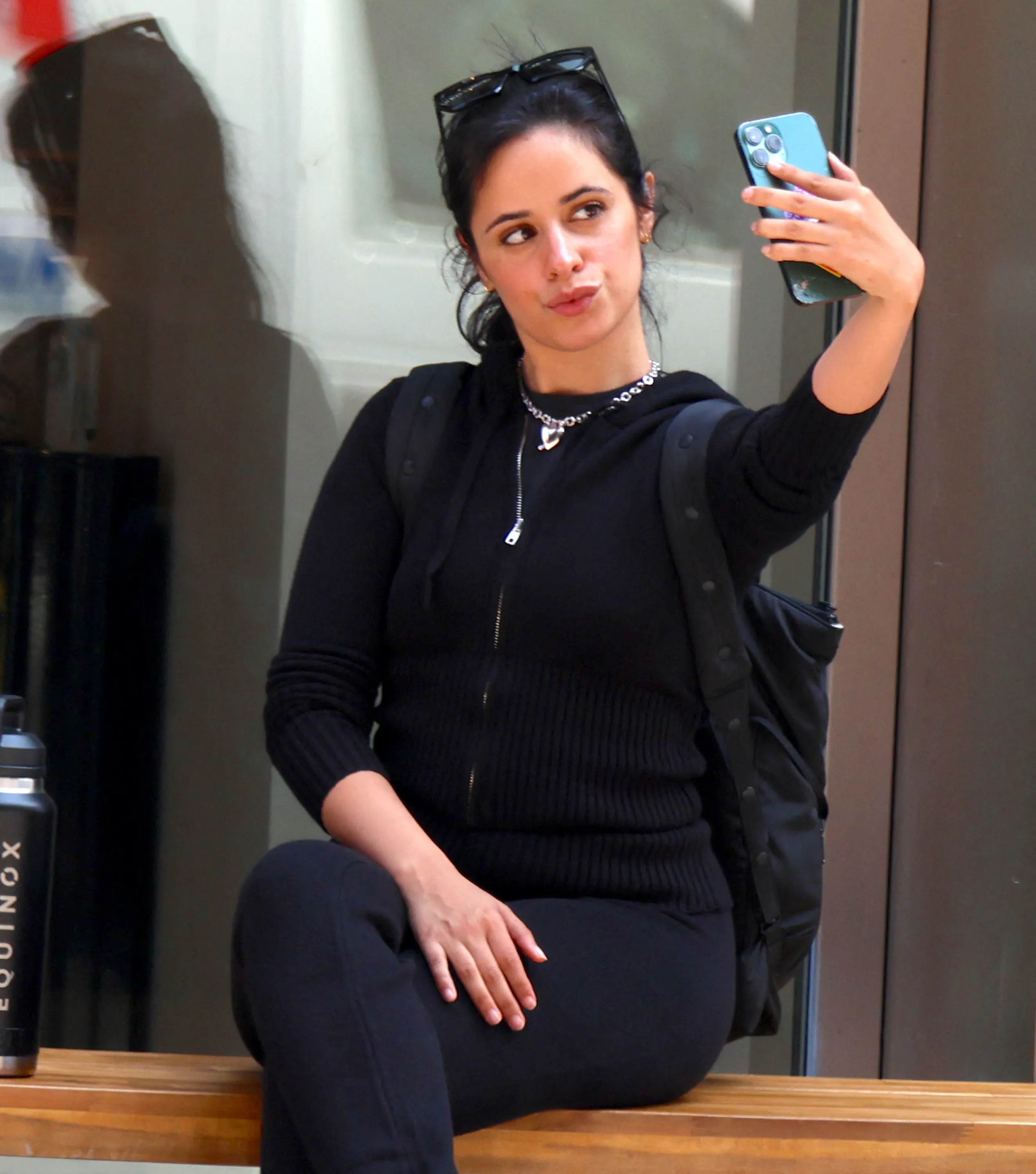 American singer-songwriter Camilla Cabello walking by herself on Broadway then waiting for a car service and taking selfies on the street in Soho, New York, NY on May 30, 2023. (Photo by Dylan Travis/Splash News and Pictures)