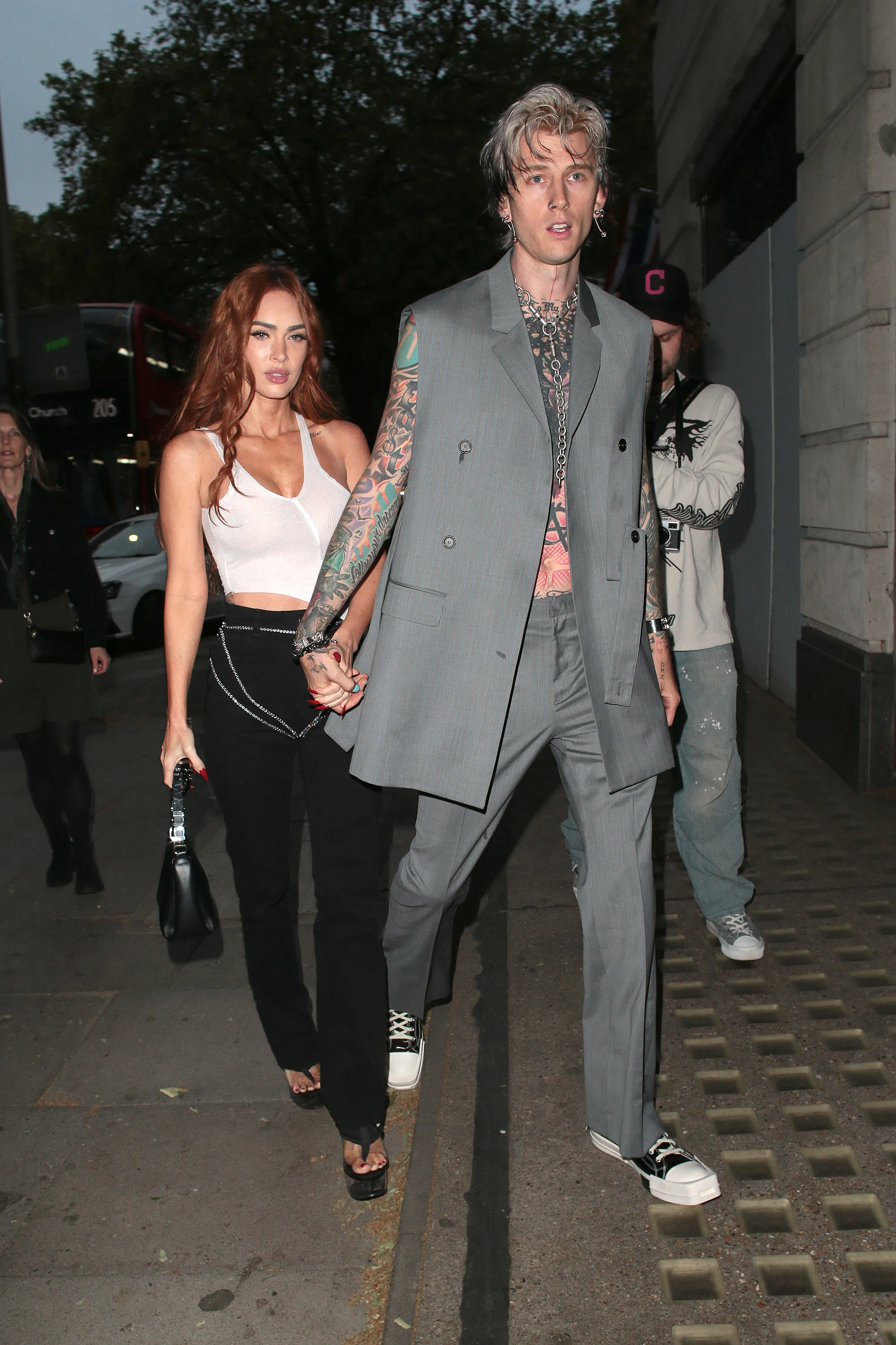 American actress and model Megan Fox and American musician Machine Gun Kelly seen attending the unveiling of “The 8th Deadly Sin - GOSSIP”, a limited-edition ring collection by Stephen Webster x Machine Gun Kelly on May 30, 2023 in London, England. (Photo by Ricky Vigil M./Justin E. Palmer/GC Images)
