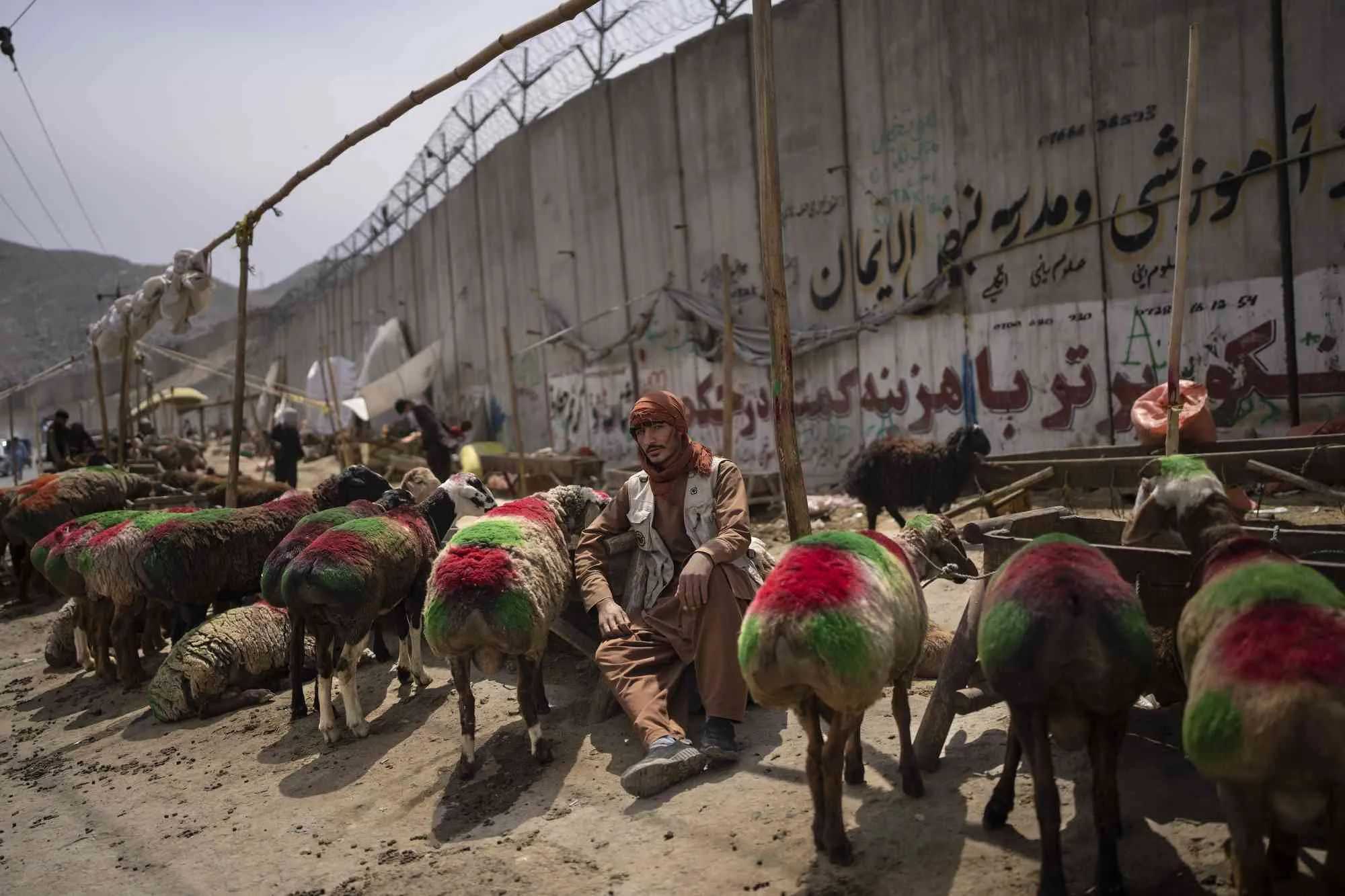 A goat seller waits for customers in Kabul, Afghanistan, Wednesday, May 31, 2023. (Photo by Rodrigo Abd/AP Photo)