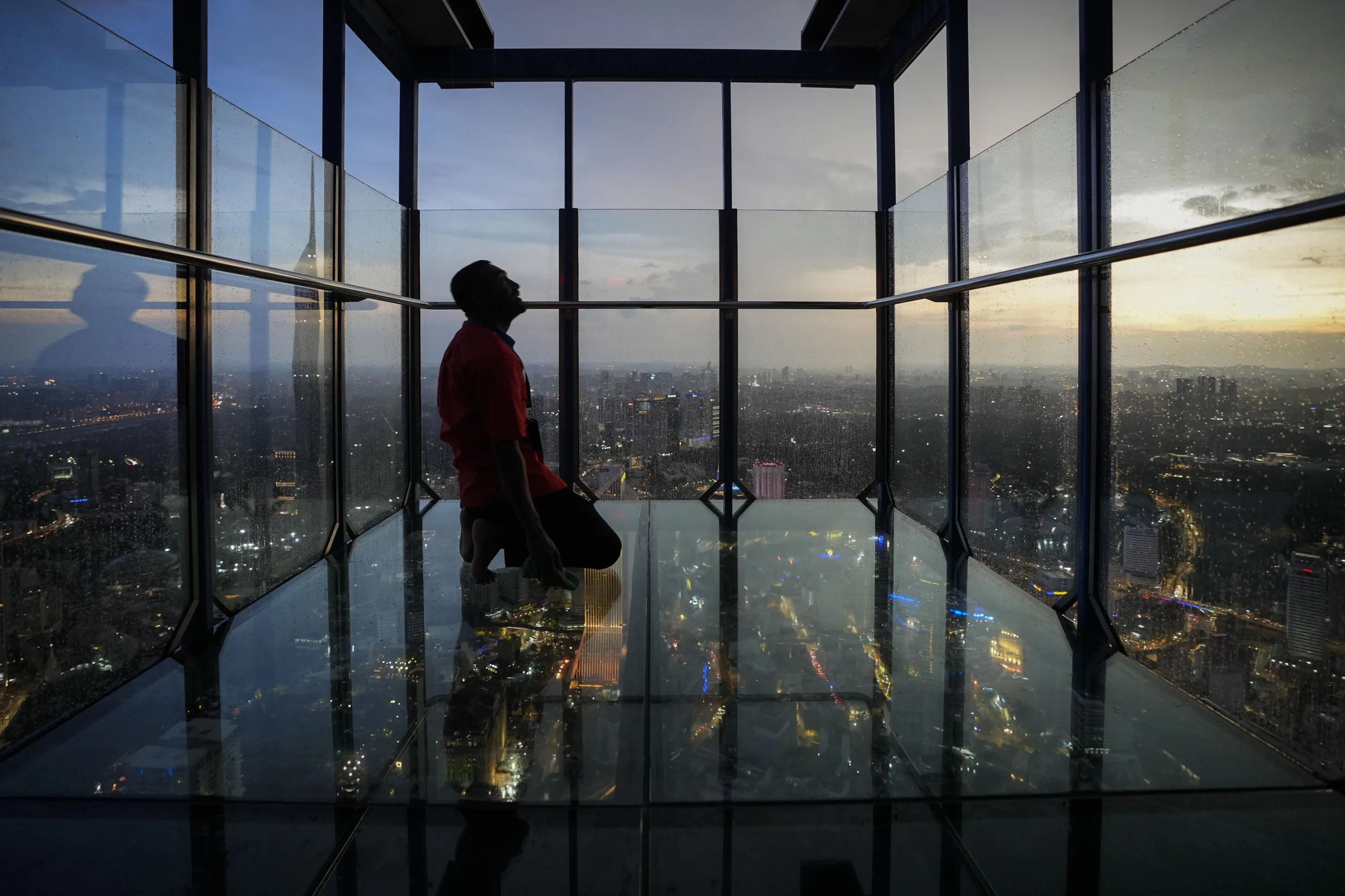 A man looks at members of the Malaysian Islamic authority as they perform the “Rukyah Hilal Ramadan”, the sighting of the new moon to determine the start of the holy fasting month of Ramadan in Kuala Lumpur, Malaysia, Wednesday, March 22, 2023. During Ramadan, Muslims worldwide marked by fasting, abstaining from foods, sex and smoking from dawn to dusk. (Photo by Vincent Thian/AP Photo)