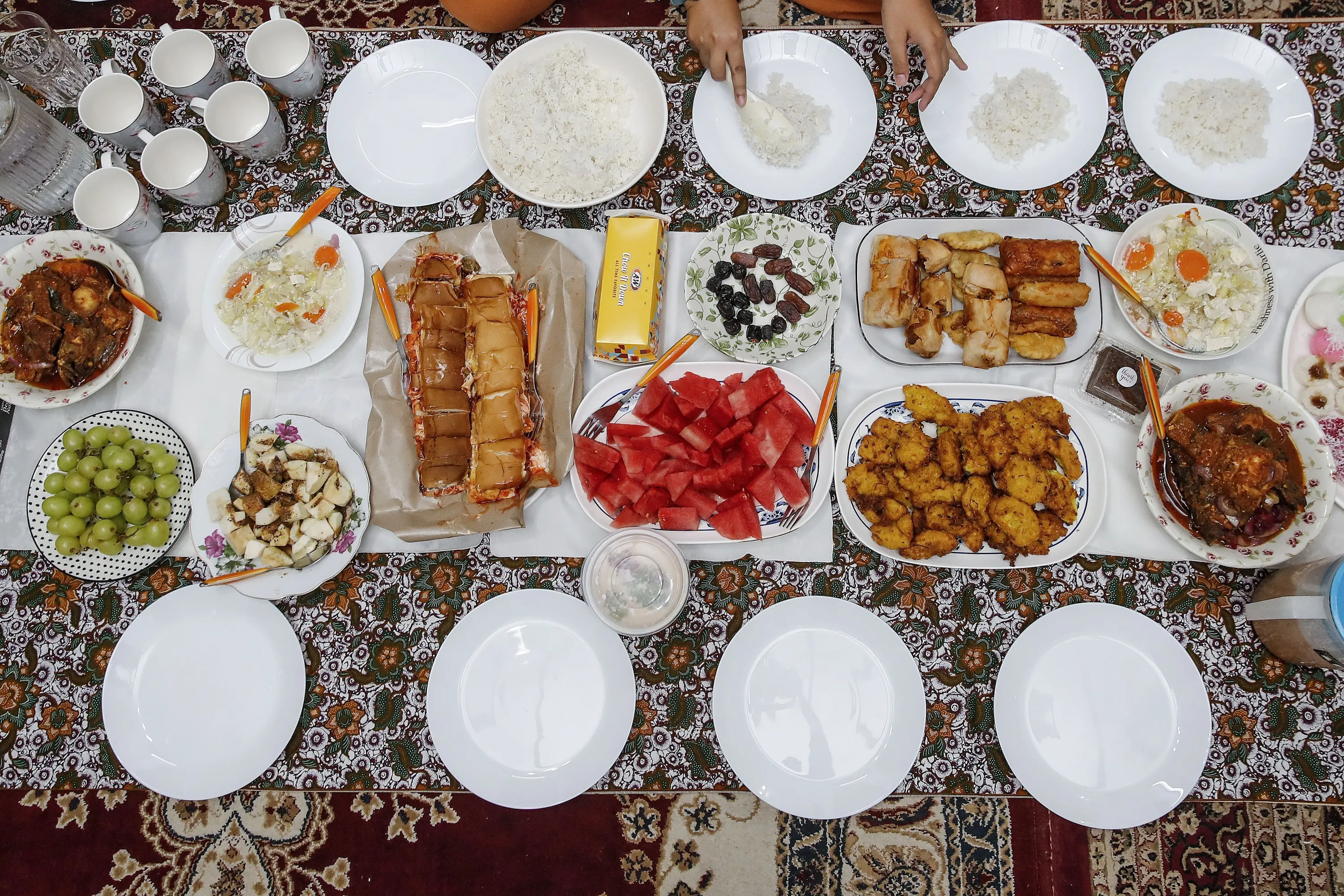 The Ku Abdul Latiff and Norhashimah Ahmad family's meal is set as they wait to break their fast on the first day of Ramadan in Shah Alam, Malaysia, 23 March 2023. Iftar is the fast-breaking meal eaten by Muslims during the fasting month of Ramadan immediately after sunset. Muslims around the world celebrate Ramadan by praying during the night time and abstaining from eating, drinking, and sexual acts during the period between sunrise and sunset. Ramadan is the ninth month in the Islamic calendar and it is believed that the revelation of the first verse in the Koran was during its last 10 nights. (Photo by Fazry Ismail/EPA/EFE)
