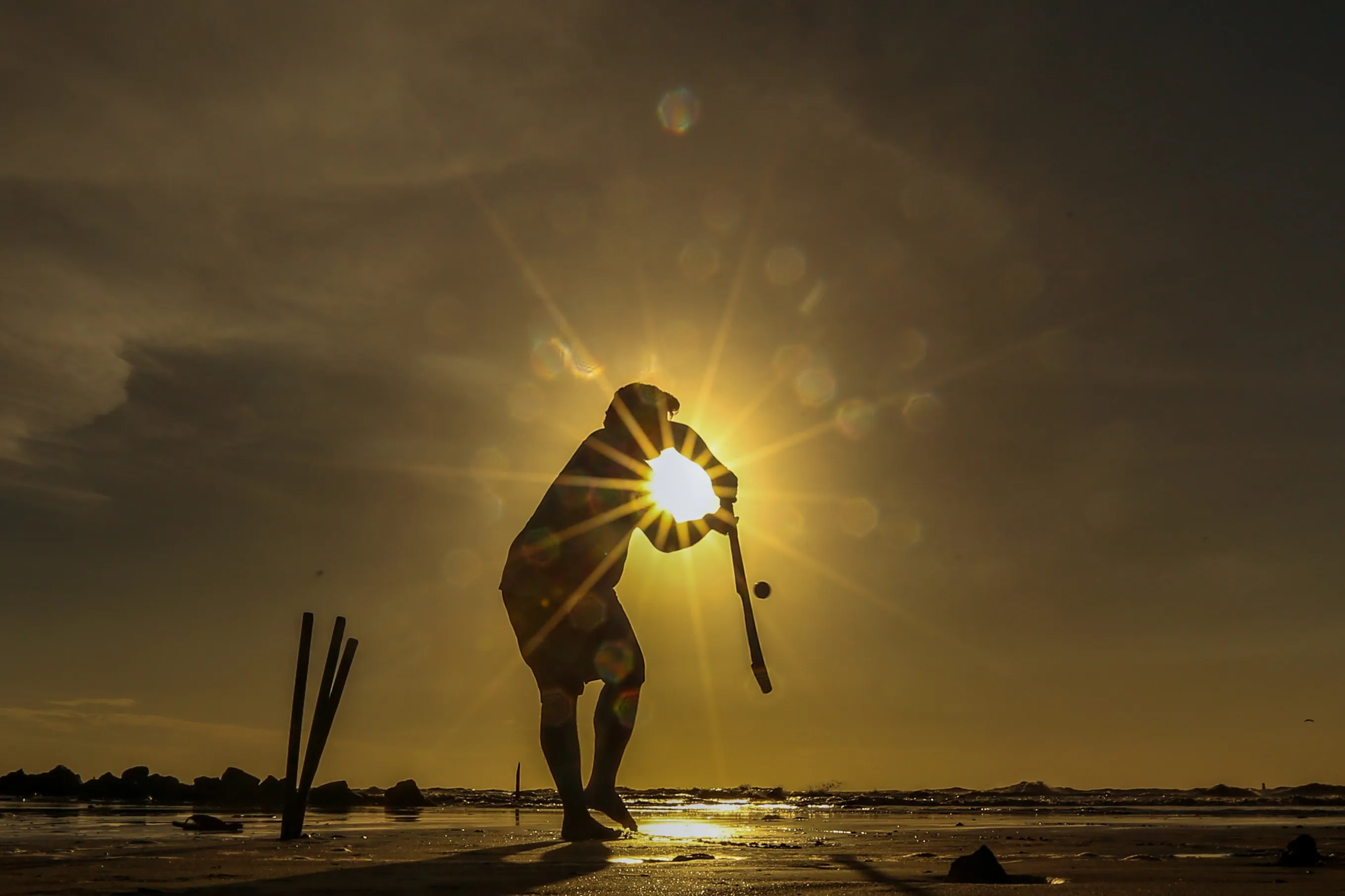An Indian fisherman from Koli community plays cricket at the Gorai beach near the Arabian Sea shore, in Mumbai, India, 09 June 2023. The India Meteorological Department (IMD) said that Cyclone Biparjoy located over the east-central and adjoining southeast Arabian Sea is likely to shift northwards and intensify into a severe cyclonic storm. Western States of India such as Gujarat, Maharashtra and Goa are on high alert. (Photo by Divyakant Solanki/EPA)