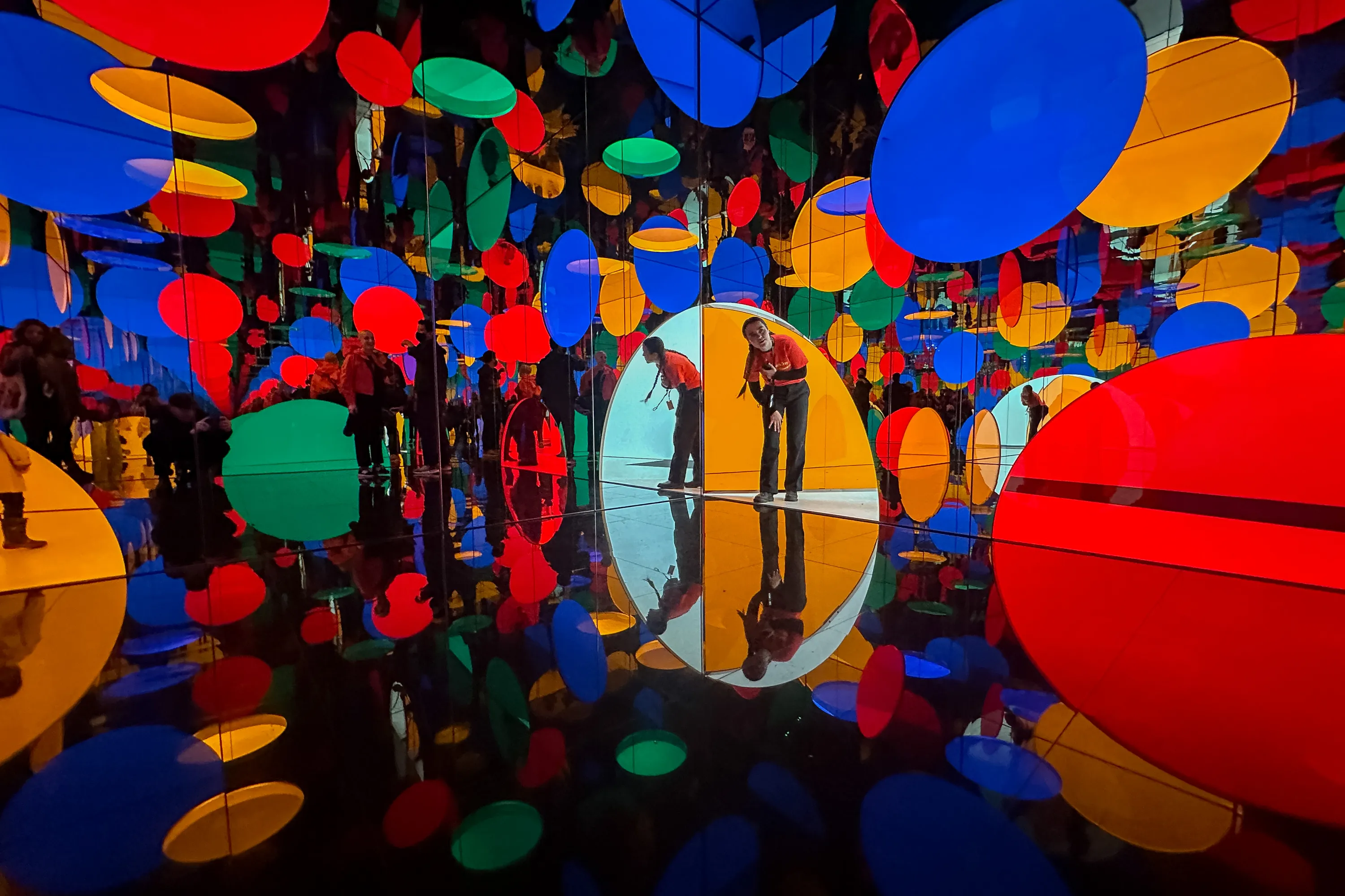The Infinity Room at a new exhibition by Yayoi Kusama titled “I spend Each Day Embracing Flowers”, featuring new sculptures elaborating on her signature motifs of pumpkins and flowers, new paintings and new Infinity Mirror Room at David Zwirner Gallery in Manhattan, New York, United States on May 20, 2023. (Photo by Adam Gray/South West News Service)
