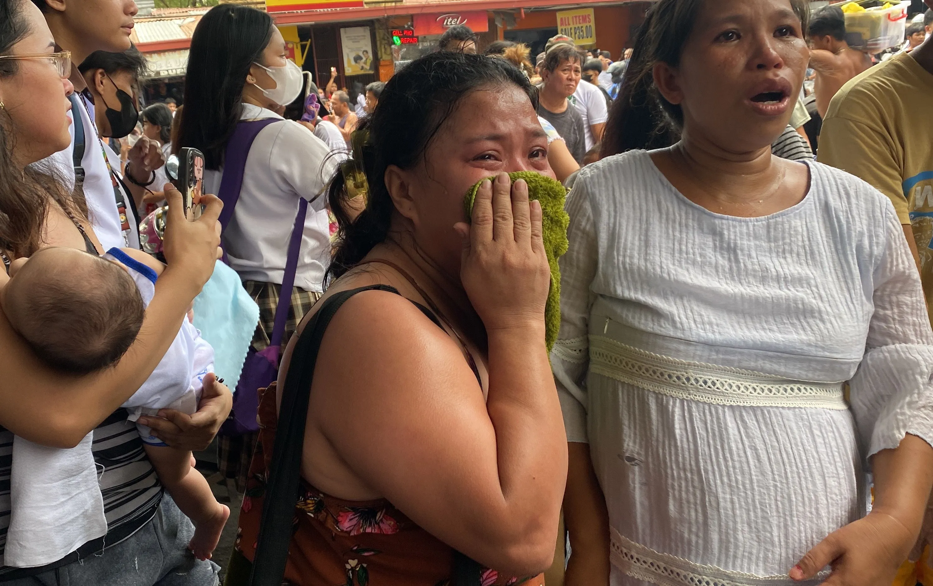 Residents react in tears as they view burning shanties during a fire in a slum area of Paranaque city, Metro Manila, Philippines, 18 May 2023. Authorities reported scores of fire fighters were injured when a fire truck overturned while responding to the site of the fire and dozens of families were rendered homeless. (Photo by Francis R. Malasig/EPA/EFE/Rex Features/Shutterstock)