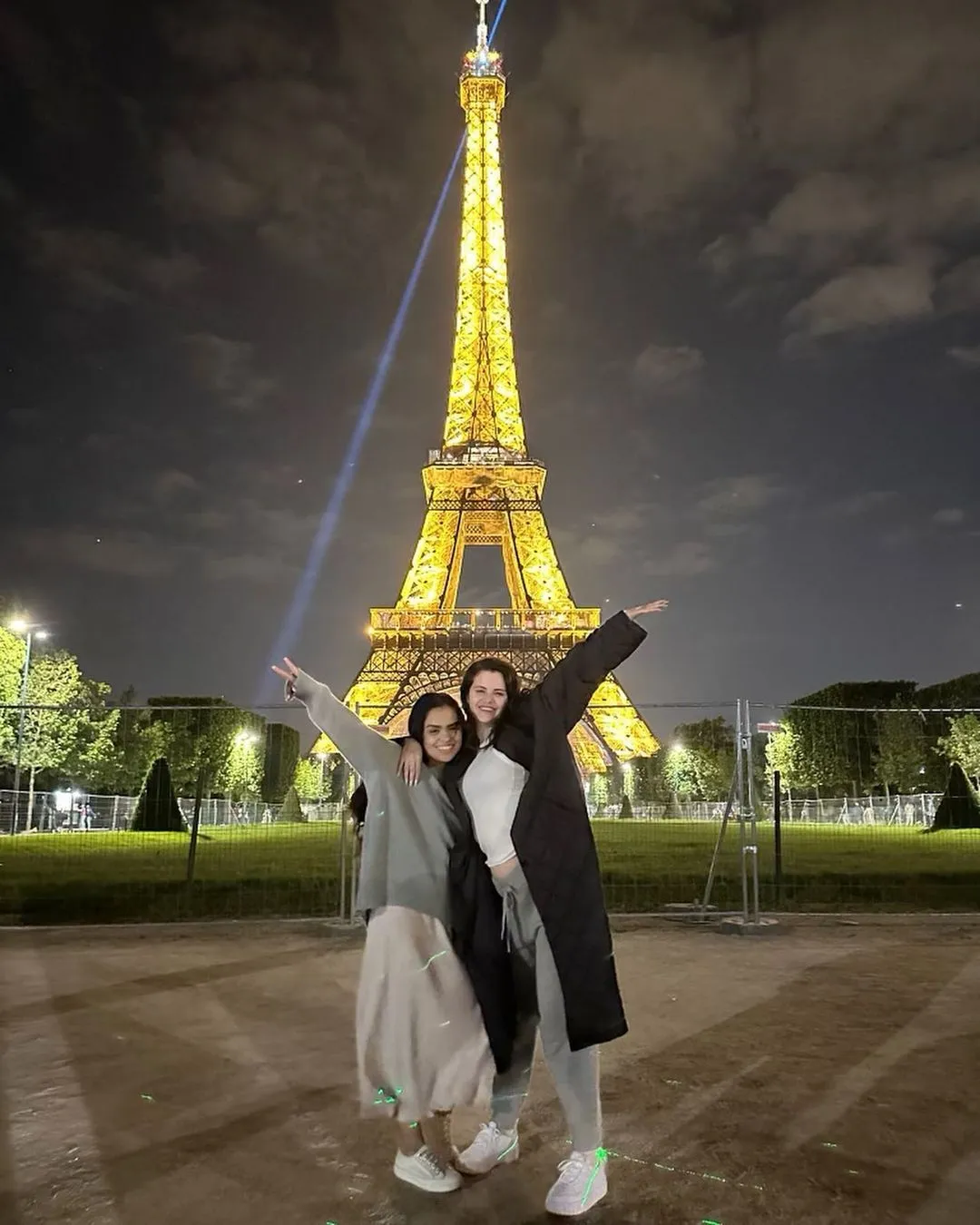 American singer and actress Selena Gomez visits the Eiffel Tower with a friend early June 2023. (Photo by selenagomez/Instagram)