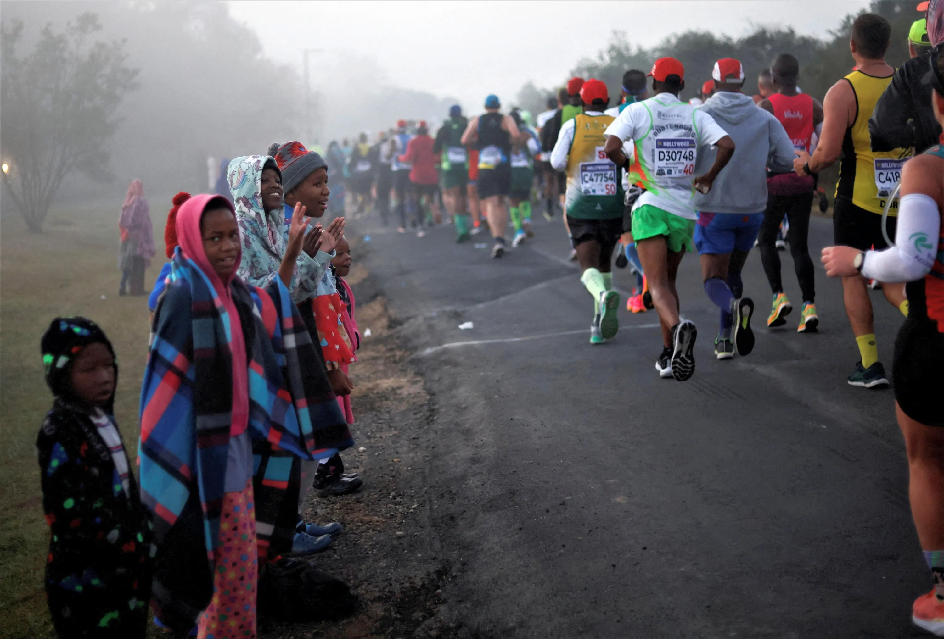 People cheer, as runners competing in the Comrades Marathon pass through Ashburton, South Africa on June 11, 2023. (Photo by Rogan Ward/Reuters)