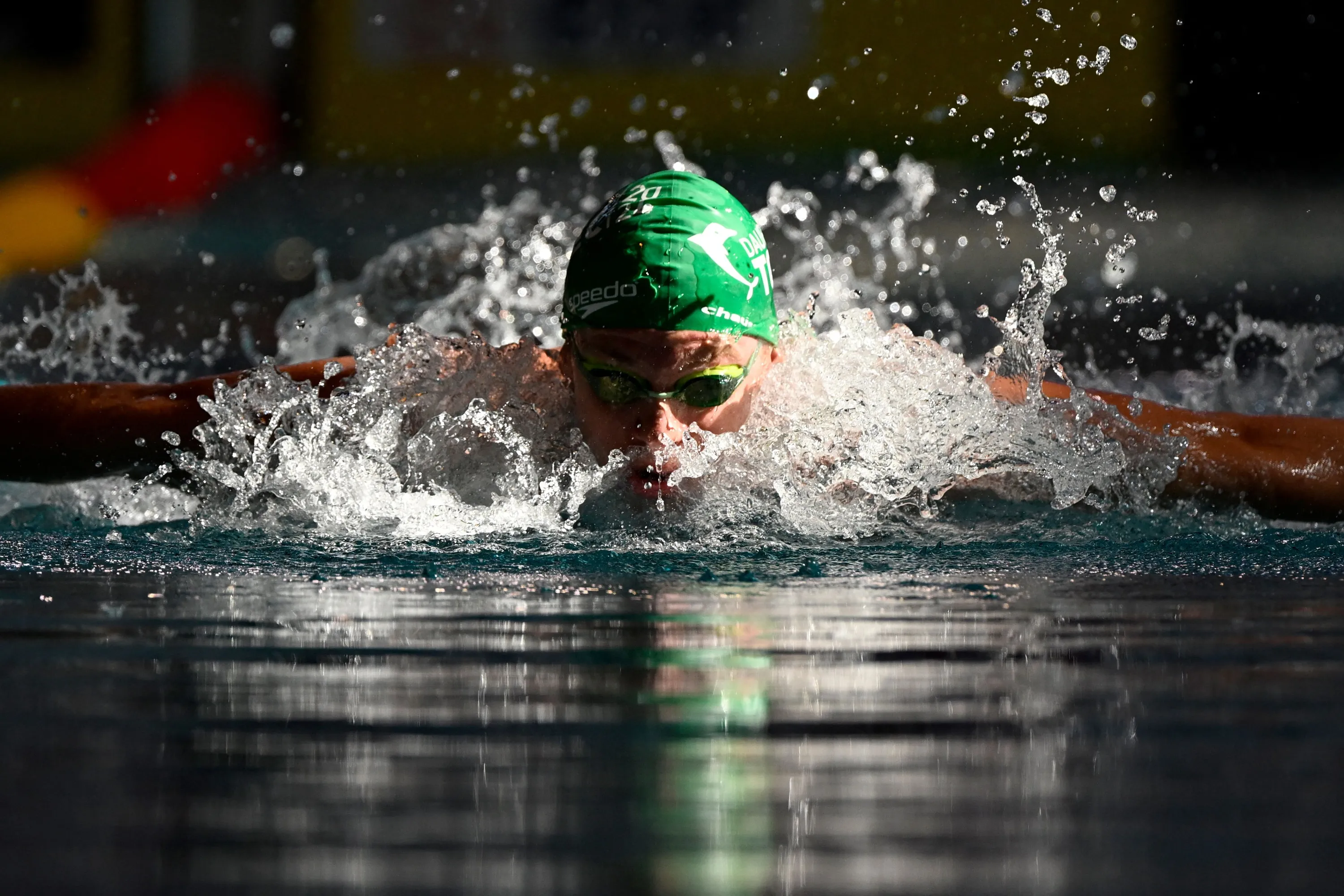 French swimmer Leon Marchand competes in the men's 200m butterfly series during the French swimming championships in Rennes, western France on June 13, 2023. (Photo by Damien Meyer/AFP Photo)
