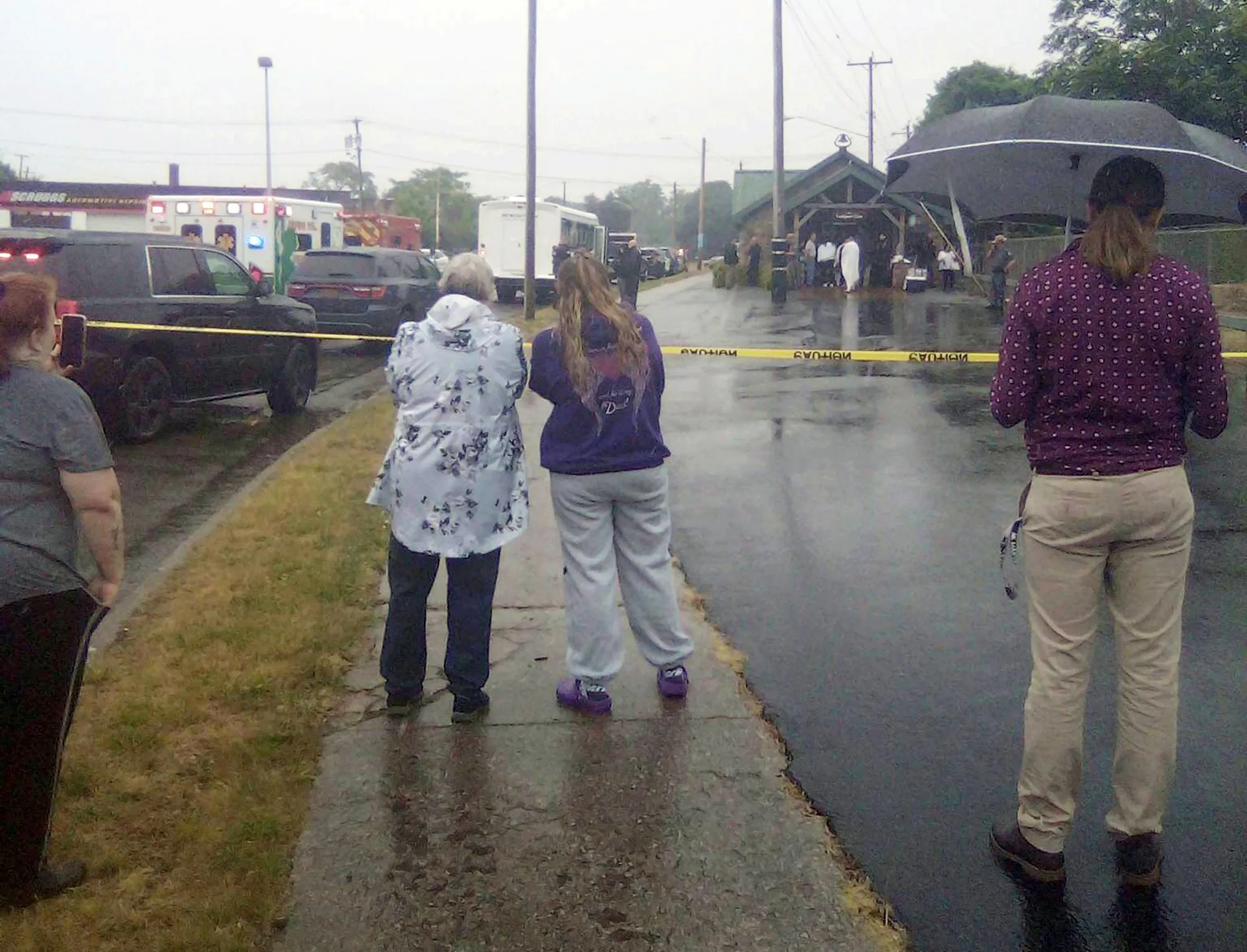 People look on as people are rescued after a boat capsizes in a cave system near Lockport, New York, on June 12, 2023. Photo provided by Thomas Coleman. (Photo by Thomas Coleman via AP Photo)