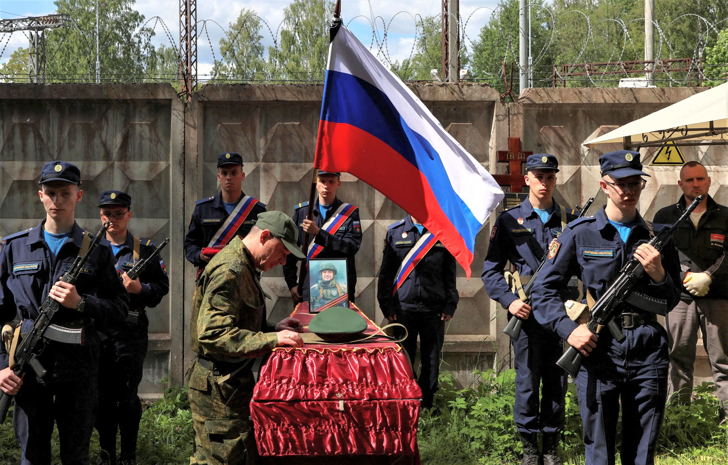 People attend the funeral of Alexander Skobelev, junior sergeant of the Russian armed forces killed in the course of Russia-Ukraine conflict, at a cemetery in the town of Shlisselburg in the Leningrad region, Russia on June 8, 2023. (Photo by Anton Vaganov/Reuters)