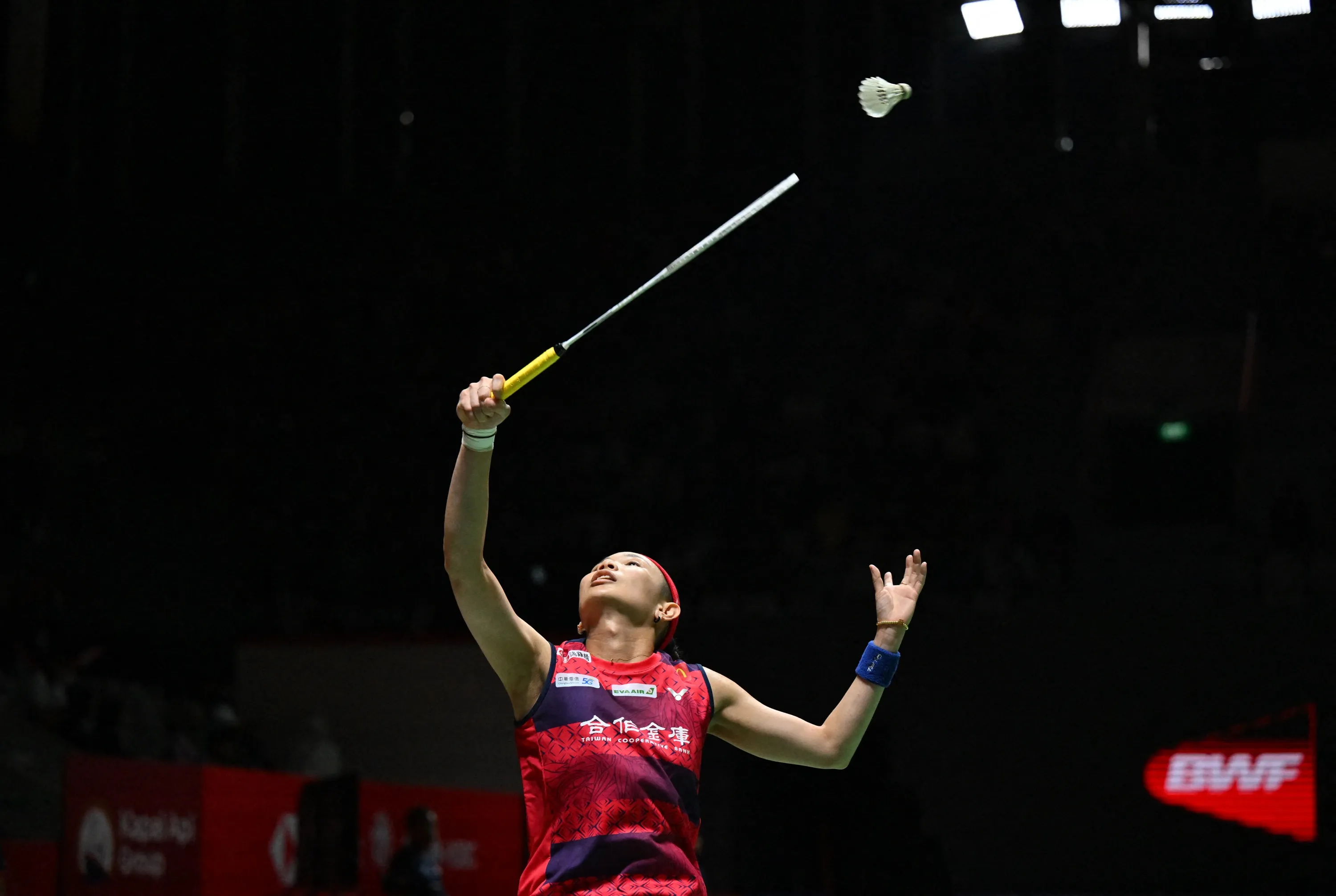 Tai Tzu Ying of Taiwan hits a return against Pusarla V. Sindhu of India during their women's singles at Indonesia Open Badminton tournament in Jakarta on June 15, 2023. (Photo by Adek Berry/AFP Photo)