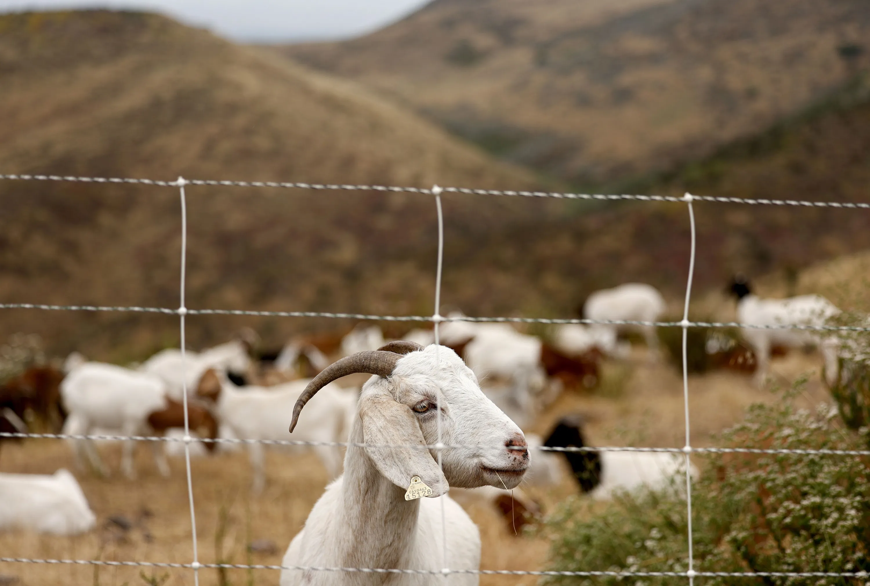 A herd of hundreds of goats gather and graze on fire-prone brush on a hillside next to the Ronald Reagan Presidential Library as part of Ventura County wildfire prevention efforts on June 15, 2023 in Simi Valley, California. The environmentally friendly tactic reduces the potential for wildfires with goats consuming combustible dry grass and brush, along with non-native plants, in fire-prone areas. Flammable vegetation growth has been fueled in Southern California this year by the parade of atmospheric river storms which doused the region in rain from December to March. (Photo by Mario Tama/Getty Images)