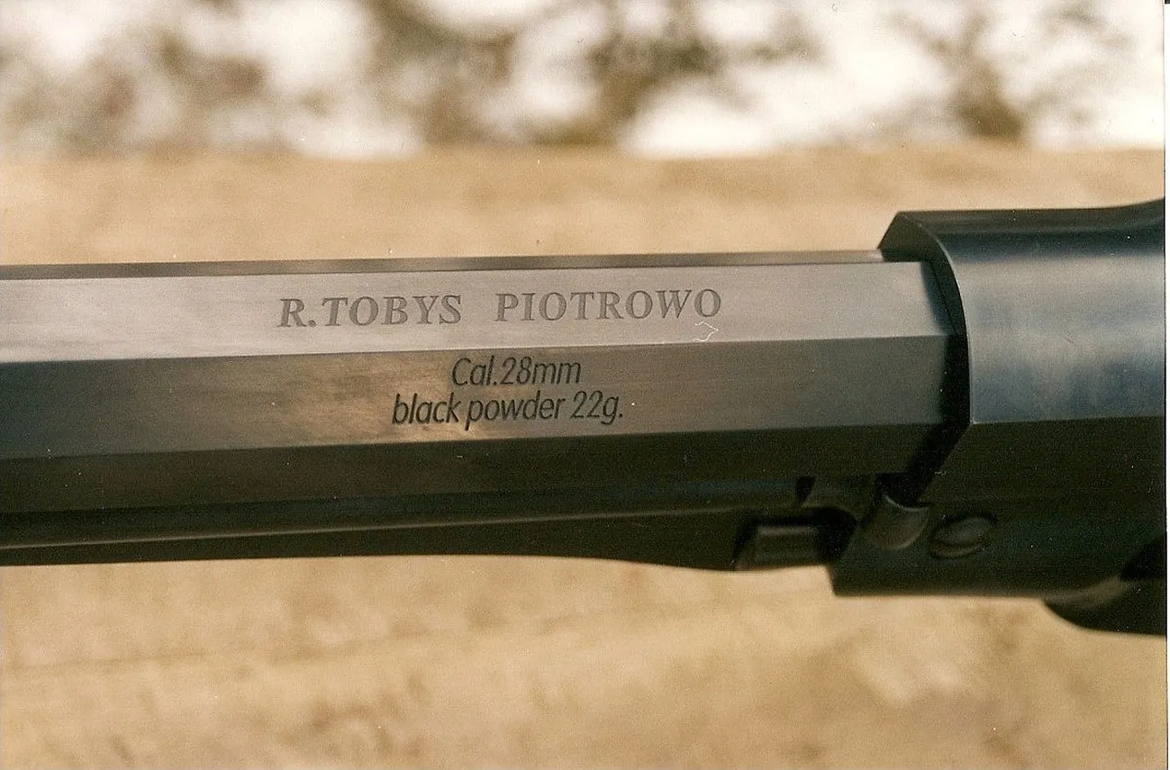 It was build by Ryszard Tobys and was modeled after the Remington Model 1859 revolver. It is 28mm in caliber