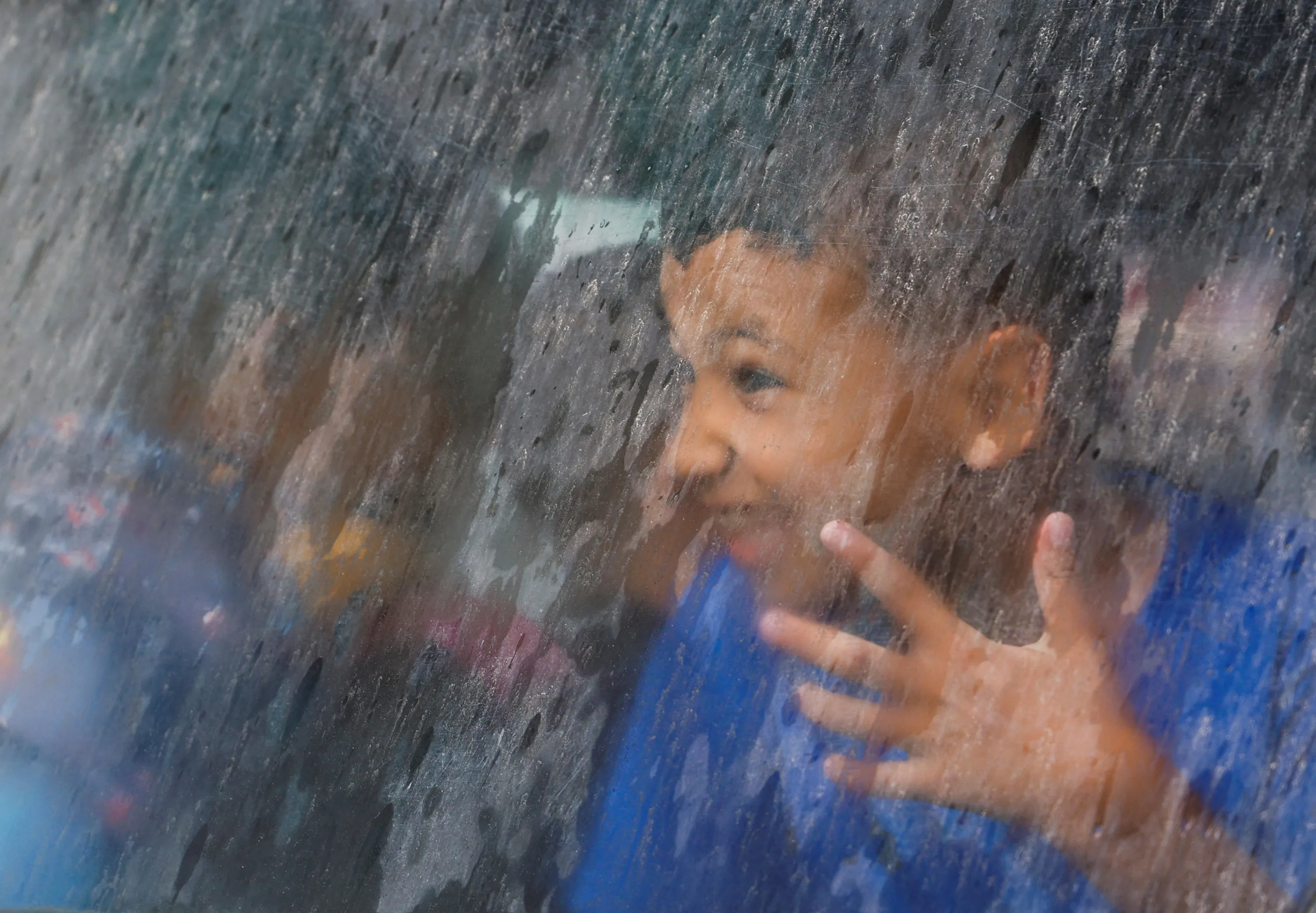 A Palestinian boy looks through a car window on a rainy day in Gaza City on June 13, 2023. (Photo by Mohammed Salem/Reuters)