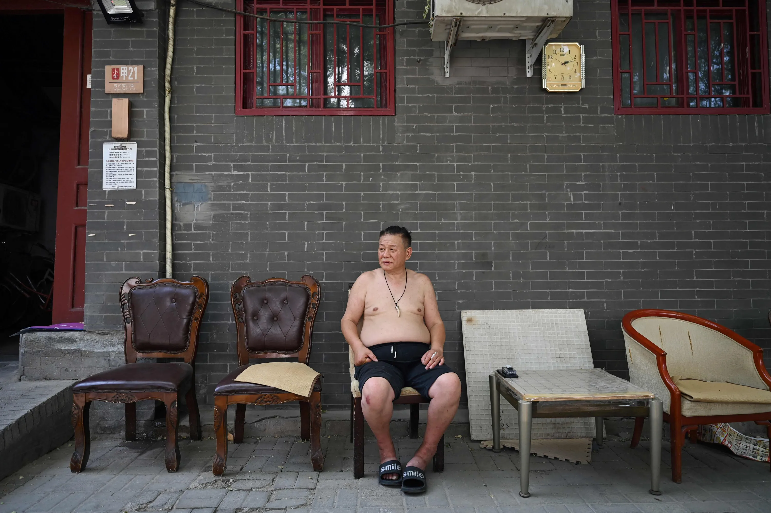 A man rests in the shade during a heatwave in Beijing on June 23, 2023. China issued its highest-level heat alert for northern parts of the country on June 23 as the capital baked in temperatures hovering around 40 degrees Celsius (104 Fahrenheit). (Photo by Greg Baker/AFP Photo)