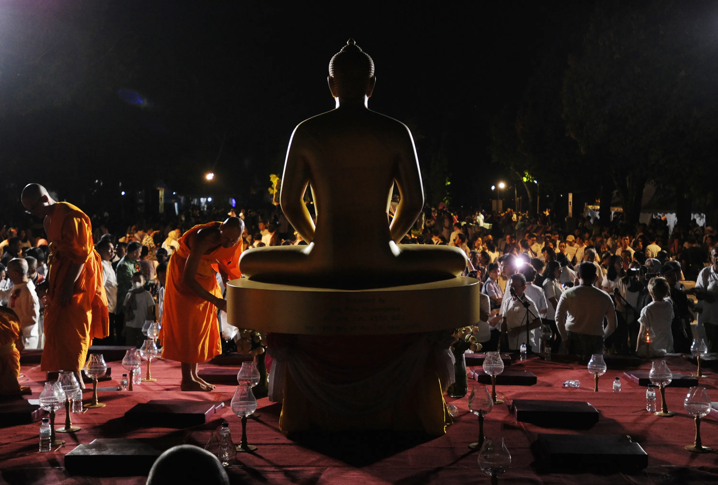Buddhist devotees attend the Vesak Day celebrations as they release lanterns into the air at Borobudur Temple in Magelang, Central Java, Indonesia on June 04, 2023. (Photo by Dasril Roszandi/Anadolu Agency via Getty Images)