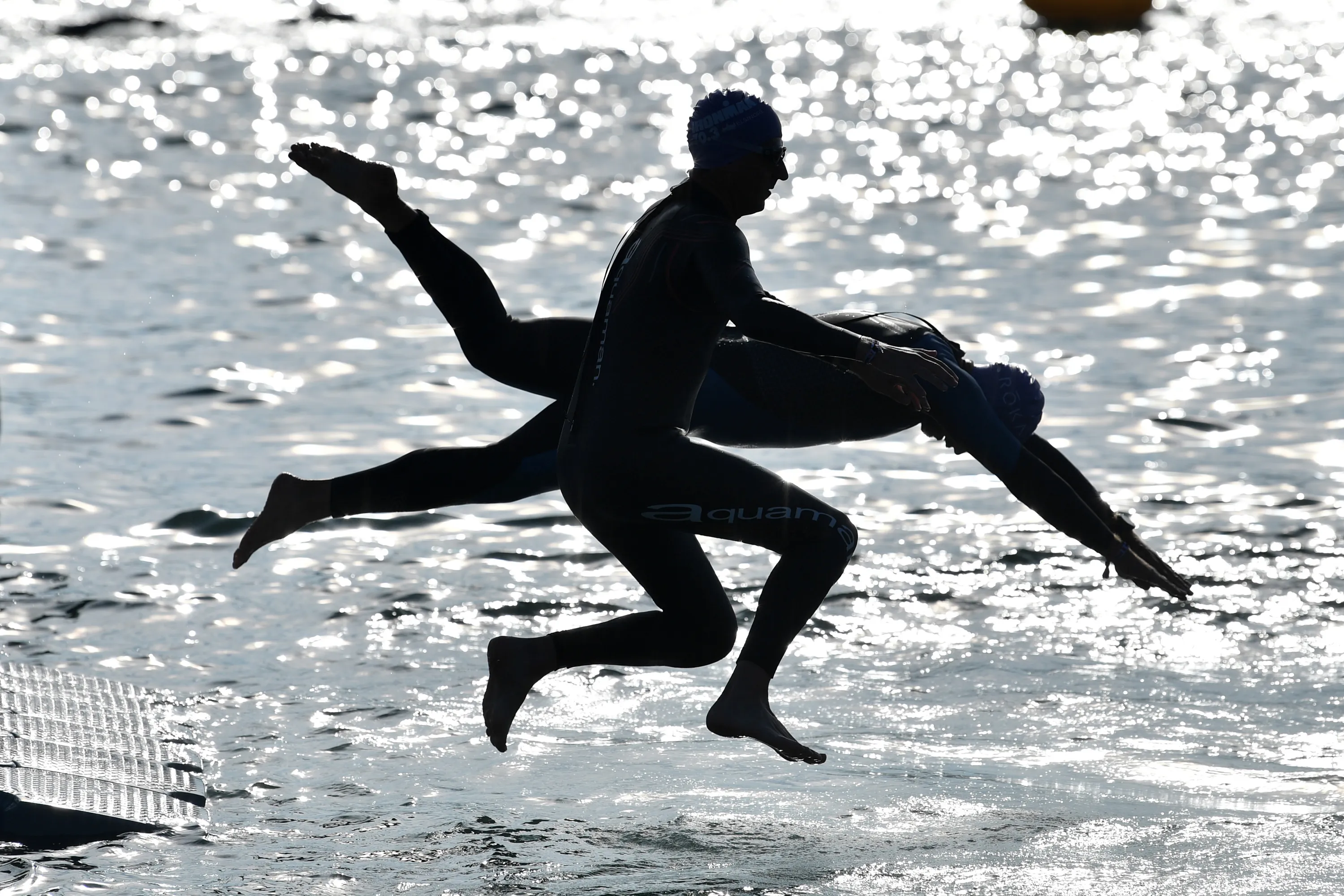 Athletes perform during the swim leg of the IRONMAN 70.3 Elsinore on June 25, 2023 in Helsingor, Denmark. (Photo by Alexander Koerner/Getty Images for IRONMAN)