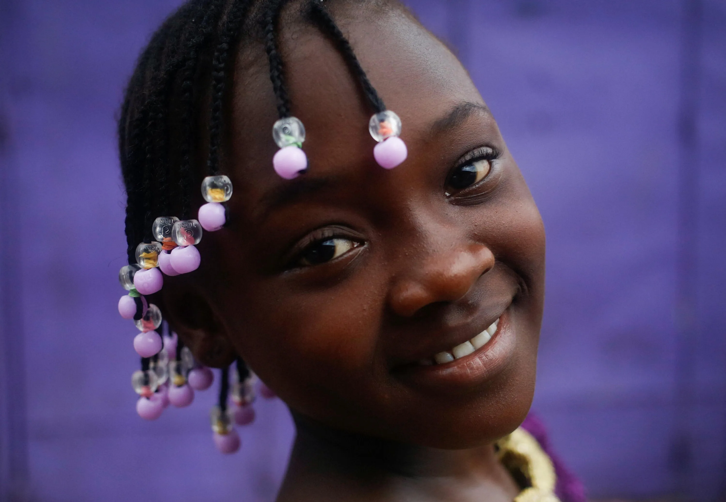 A Muslim girl smiles, as she stands in a street after the prayer marking the the Eid al-Adha festival, in Adjame, Abidjan, Ivory Coast on June 28, 2023. (Photo by Luc Gnago/Reuters)