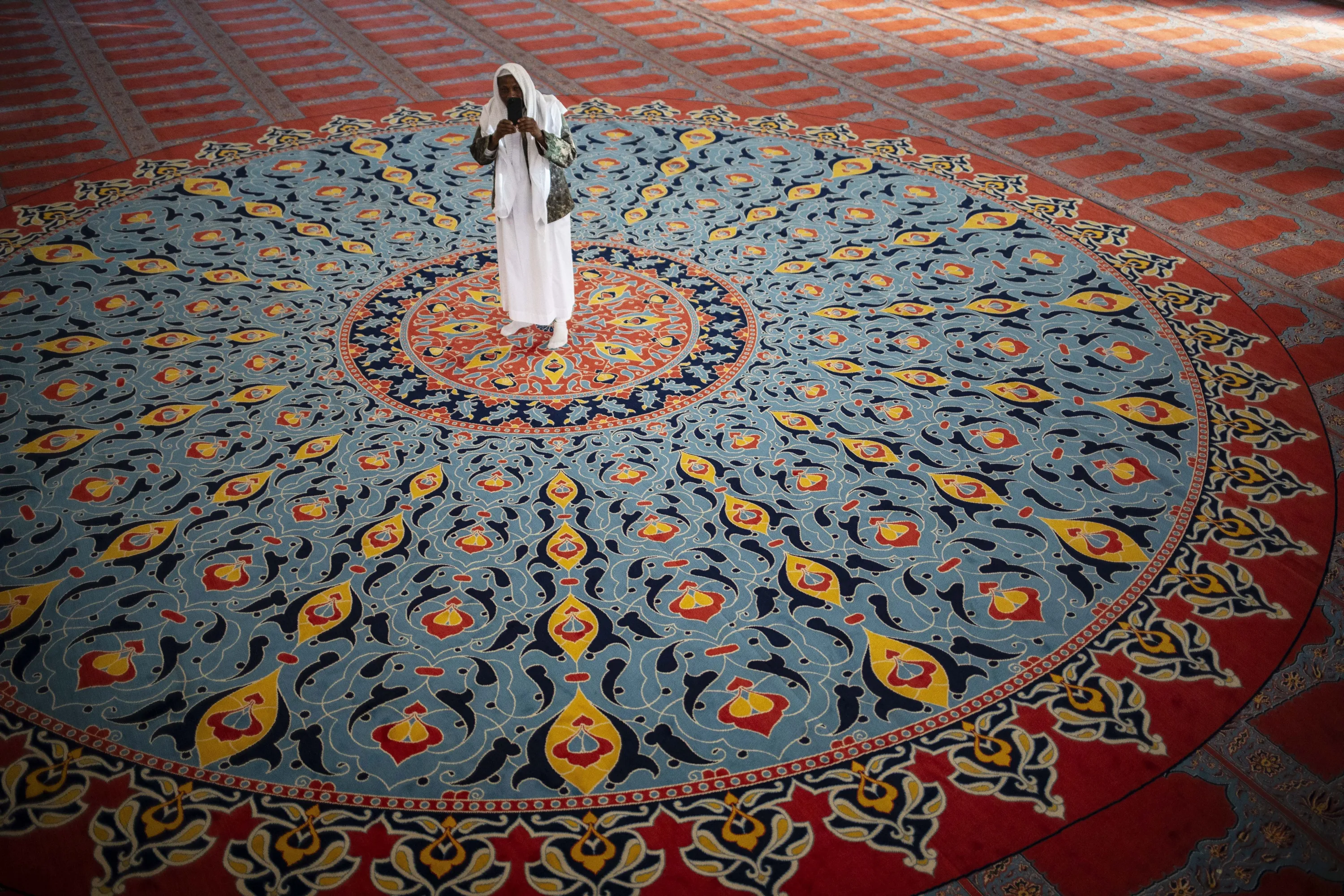 A worshiper spends time on his own after the main prayer service had finished at The Nizamiye Mosque during Eid al-Adha celebrations in Johannesburg, South Africa, 29 June 2023. Eid al-Adha is the holiest of the two Muslims holidays celebrated each year, it marks the yearly Muslim pilgrimage (Hajj) to visit Mecca in Saudi Arabia, the holiest place in Islam. Muslims slaughter a sacrificial animal in memory of a biblical story about prophet Abraham readiness to sacrifice his own son after a command from god in a dream. After an animal has been sacrificed the meat is usually split into three parts, one for the family, one for friends and relatives, and one for the poor and needy. (Photo by Kim Ludbrook/EPA)