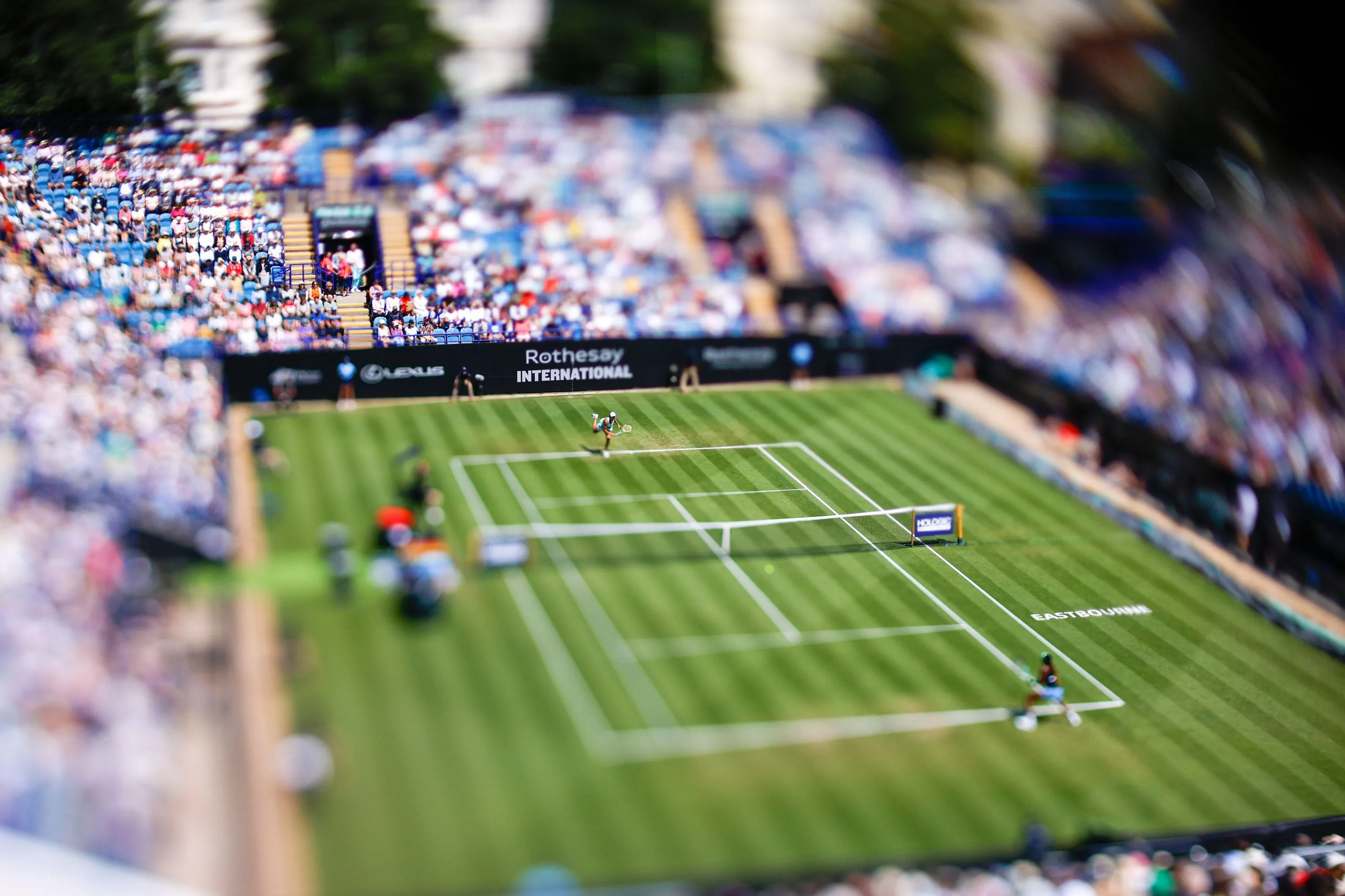 A view of centre court during the match between Madison Keys (USA) and Coco Gauff (USA) in East Sussex, England on June 30, 2023. (Photo by Action Plus Sports Images/Alamy Live News)