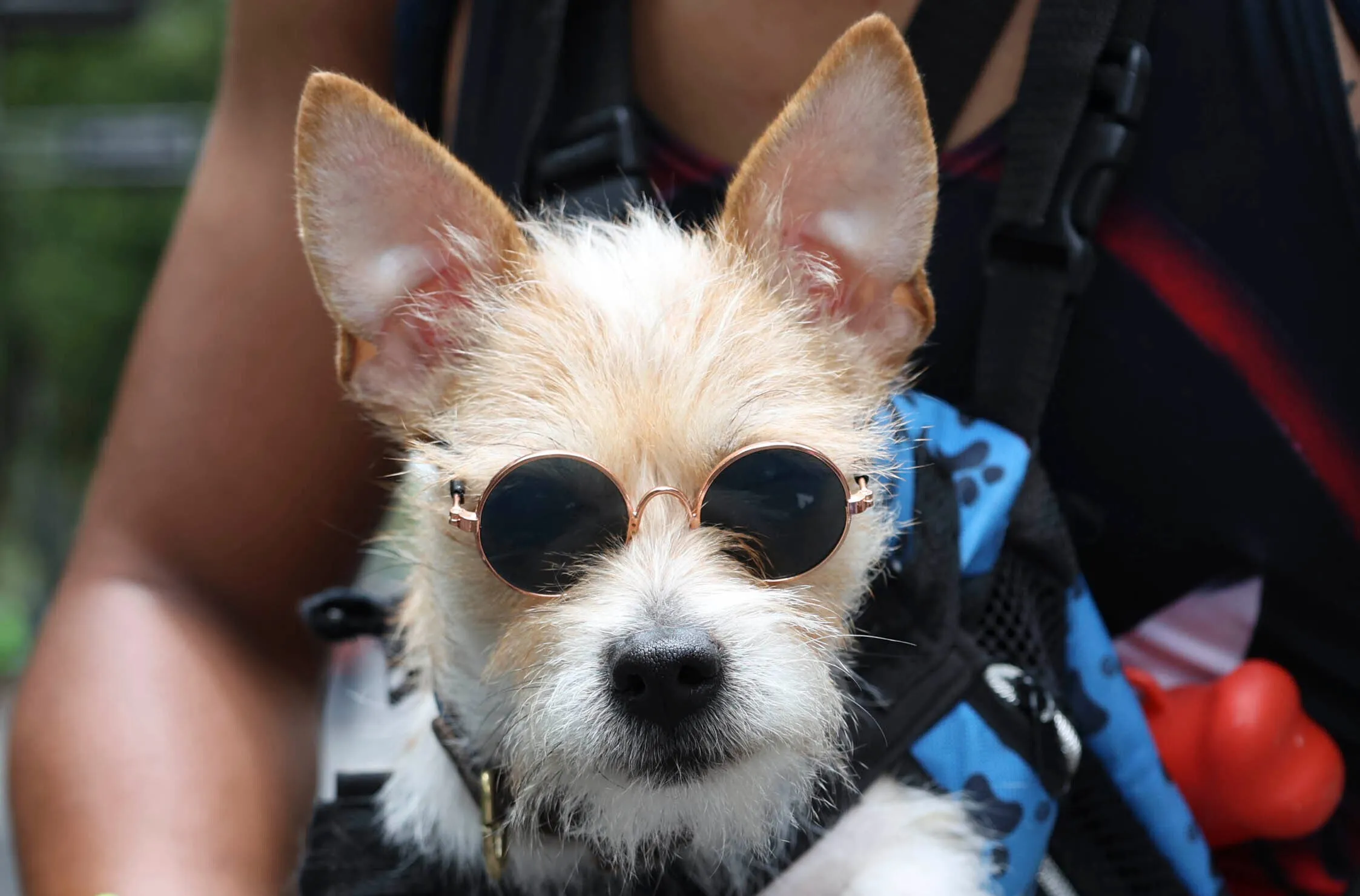Milanesa, a rescue dog, rides on a bicycle with his owner during a march against animal abuse and for animal rights in Mexico City, Sunday, June 25, 2023. (Photo by Ginnette Riquelme/AP Photo)