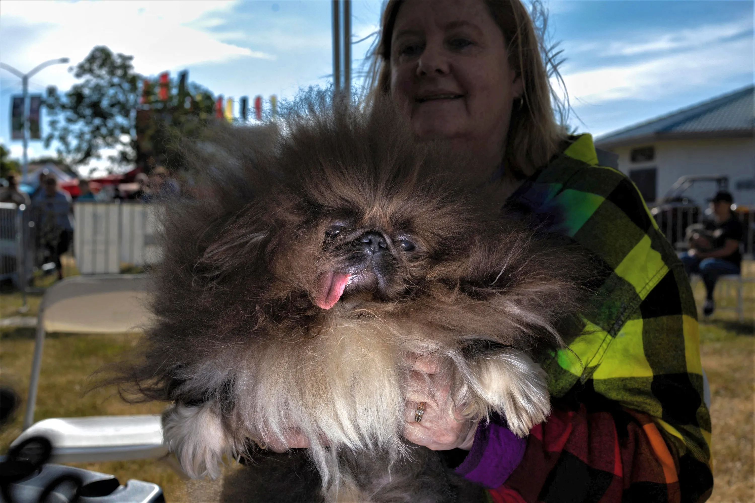 Catherine Kennedy holds her dog Barron as they compete at the annual World's Ugliest Dog Contest at the Sonoma-Marin Fair in Petaluma, California U.S., June 23, 2023. (Photo by Carlos Barria/Reuters)