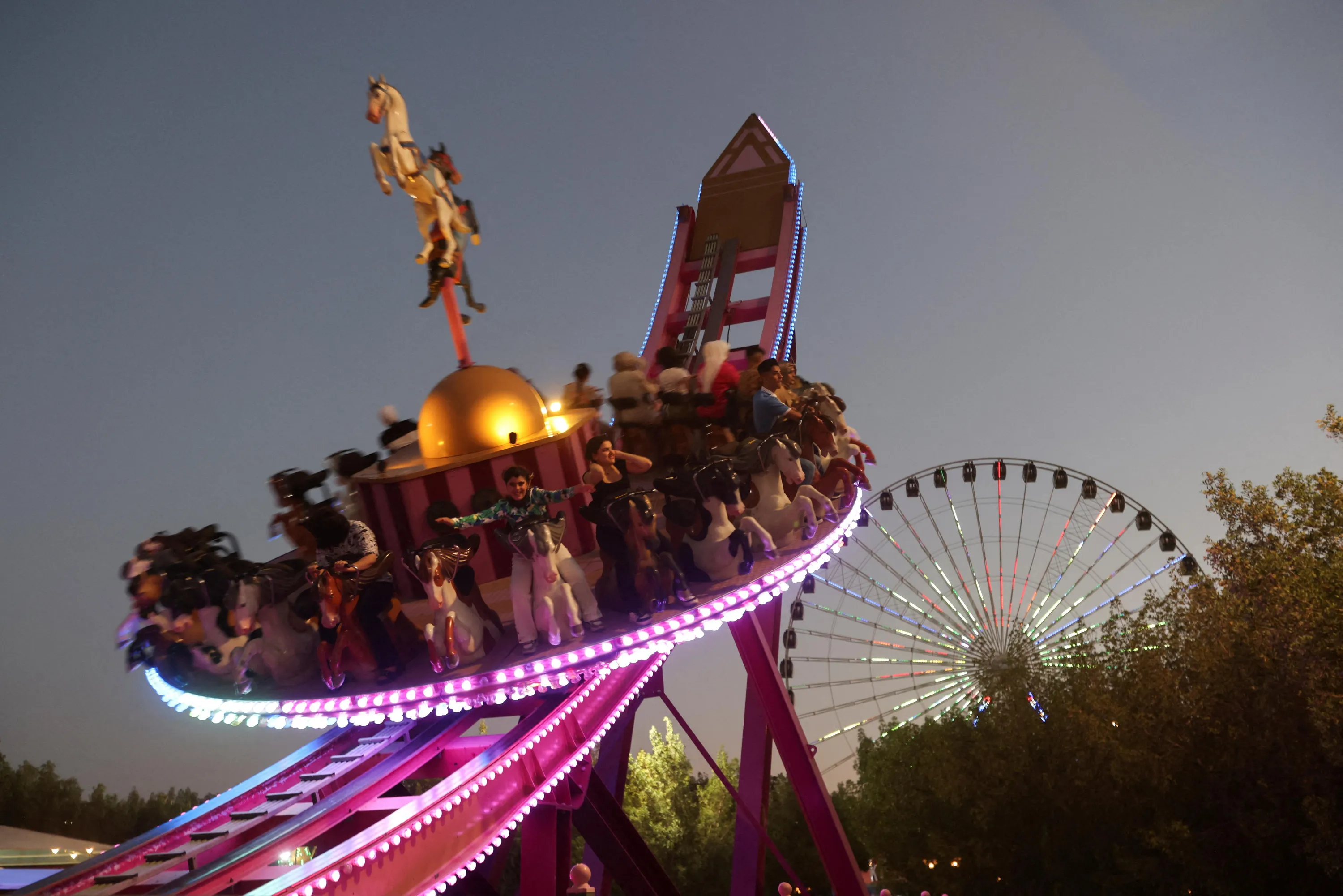 Iraqi residents take a ride at an amusement park as they celebrate the Muslim festival of Eid-al-Adha in Baghdad, Iraq on June 28, 2023. (Photo by Ahmed Saad/Reuters)