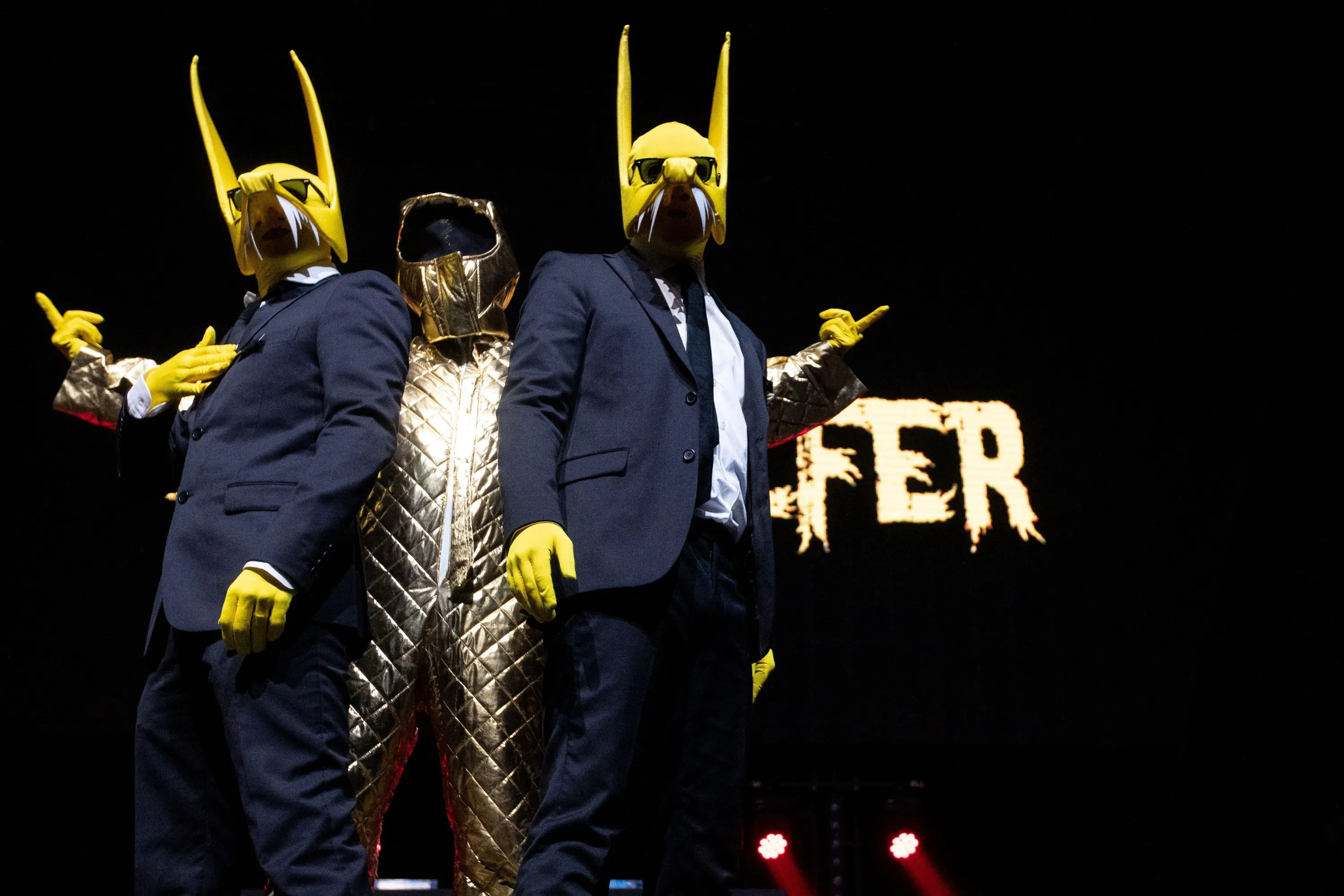 The trio Subwoolfer performs on behalf of Norway with the song “Give That Wolf A Banana” during the Eurovision in Concert in Amsterdam, on April 9, 2022. Several artists will perform during this concert who will participate in the festival in May. (Photo by Paul Bergen/ANP via AFP Photo)