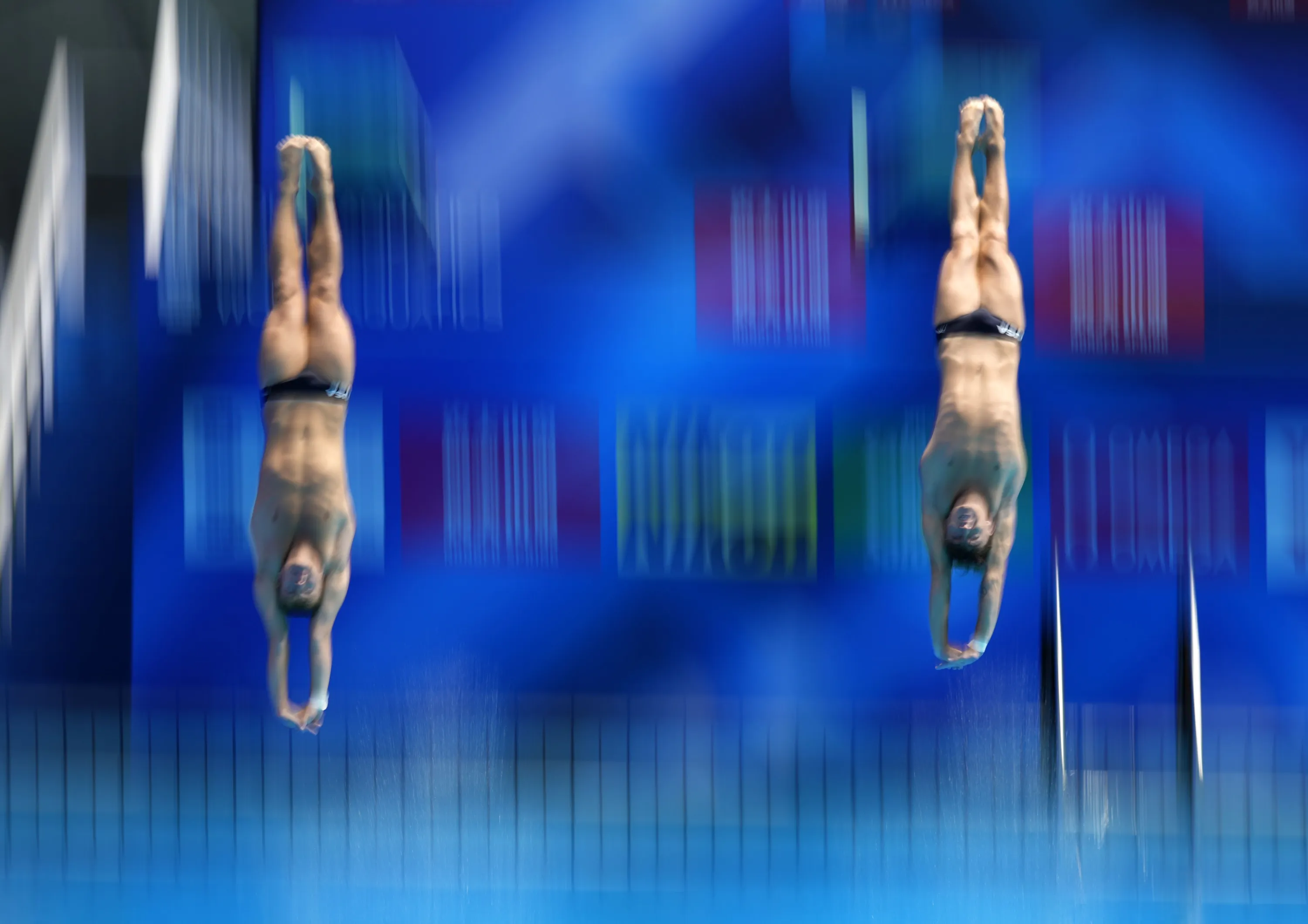 Tyler Downs and Greg Duncan of the US compete at the Men’s 3m Synchronised Springboard preliminary round of the Diving events during the World Aquatics Championships 2023 in Fukuoka, Japan, 15 July 2023. (Photo by Franck Robichon/EPA)