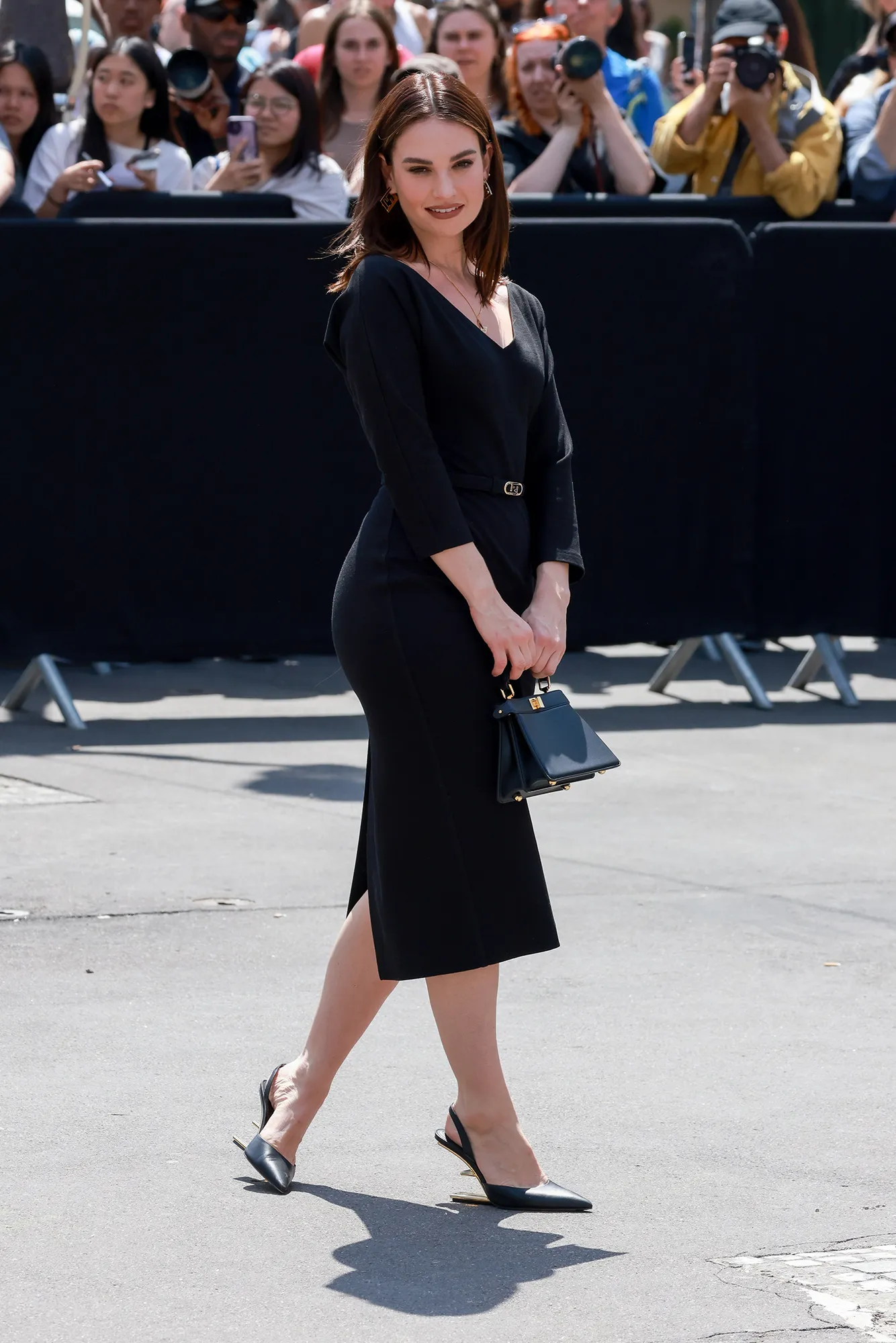English actress Lily James attends the Fendi Haute Couture Fall/Winter 2023/2024 show as part of Paris Fashion Week on July 06, 2023 in Paris, France. (Photo by Arnold Jerocki/Getty Images)