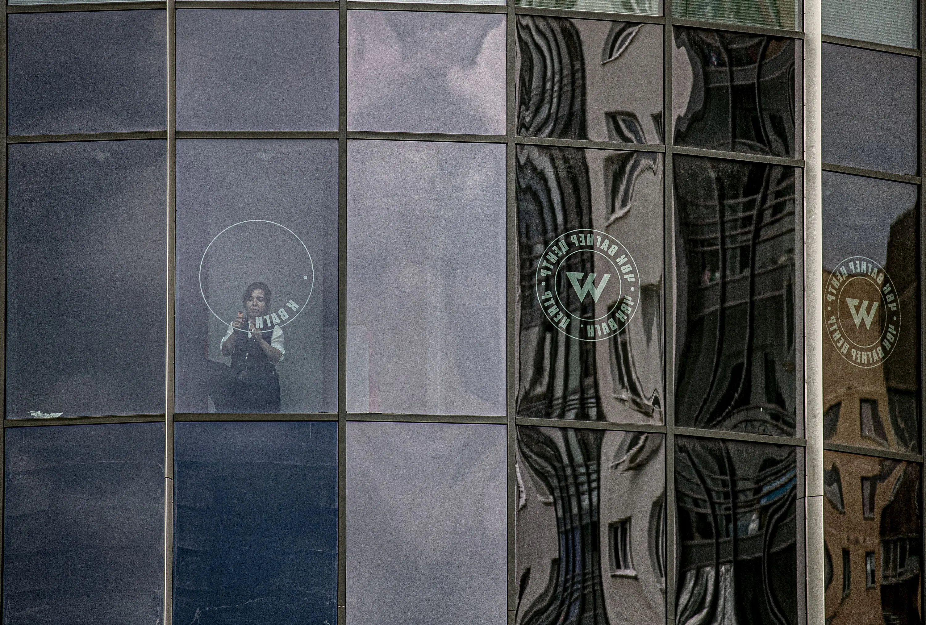 A worker removes the logo of the private military company (PMC) Wagner Group from the windows of the Sea Capital (Morskaya Stolitsa) business center, where Yevgeny Prigozhin's company rented several floors in St. Petersburg, Russia, 02 July 2023. On 23 June 2023, Wagner Group forces led by Prigozhin left the frontline in Ukraine and staged an 'armed mutiny' against Russia's military leadership. Prigozhin claimed on 24 June 2023 that his troops had occupied the headquarters of the Southern Military District in Rostov-on-Don, Russia, a key city near the Ukrainian border. A deal negotiated by the Belarusian president with Prigozhin stopped the Wagner forces' movement toward Moscow and ended the standoff, with Prigozhin and his fighters leaving the country. (Photo by Anatoly Maltsev/EPA)