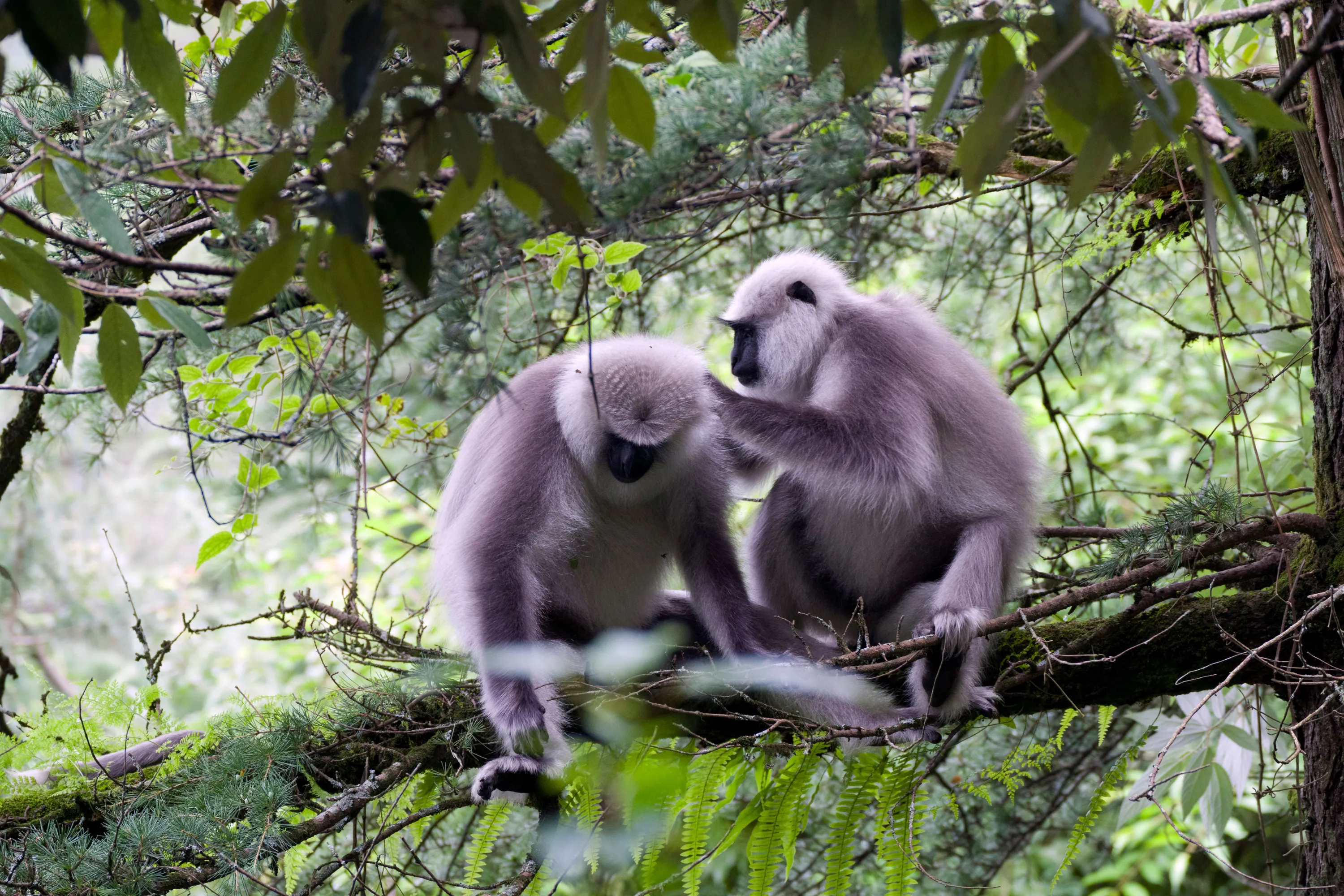 A langur grooms another in Dharamshala, India, Thursday, July 13, 2023. (Photo by Ashwini Bhatia/AP Photo)