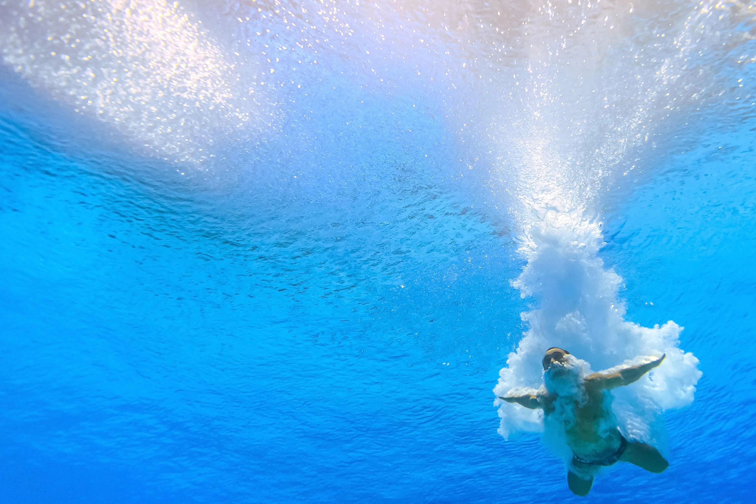 USA's Maxwell Flory competes in the semi-final of the men's 10m platform diving event during the World Aquatics Championships in Fukuoka on July 21, 2023. (Photo by Manan Vatsyayana/AFP Photo)