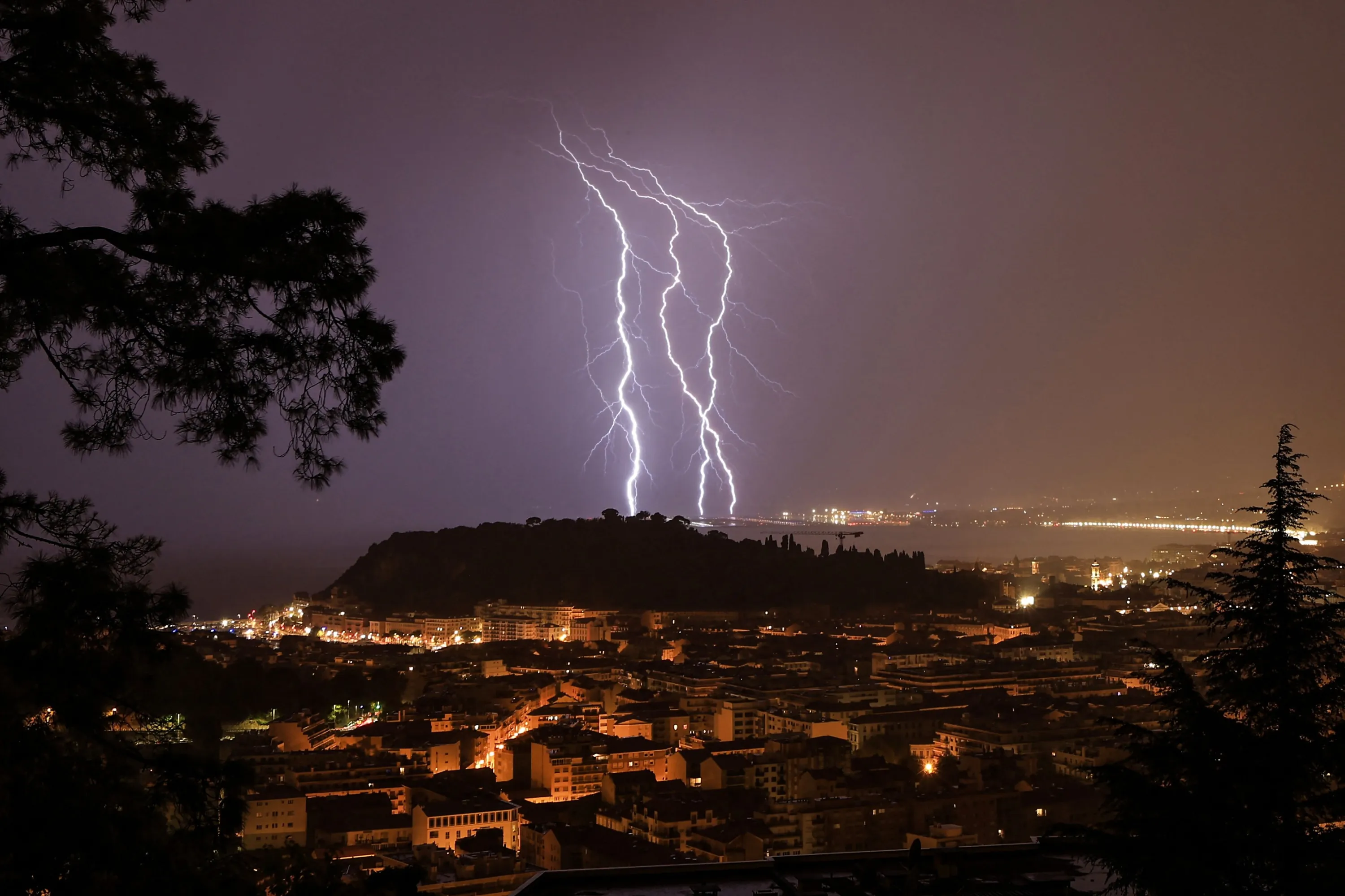 Lightning strikes over the French Riviera city of Nice, Southerneast France, on late Septembe 30, 2022. (Photo by Valery Hache/AFP Photo)