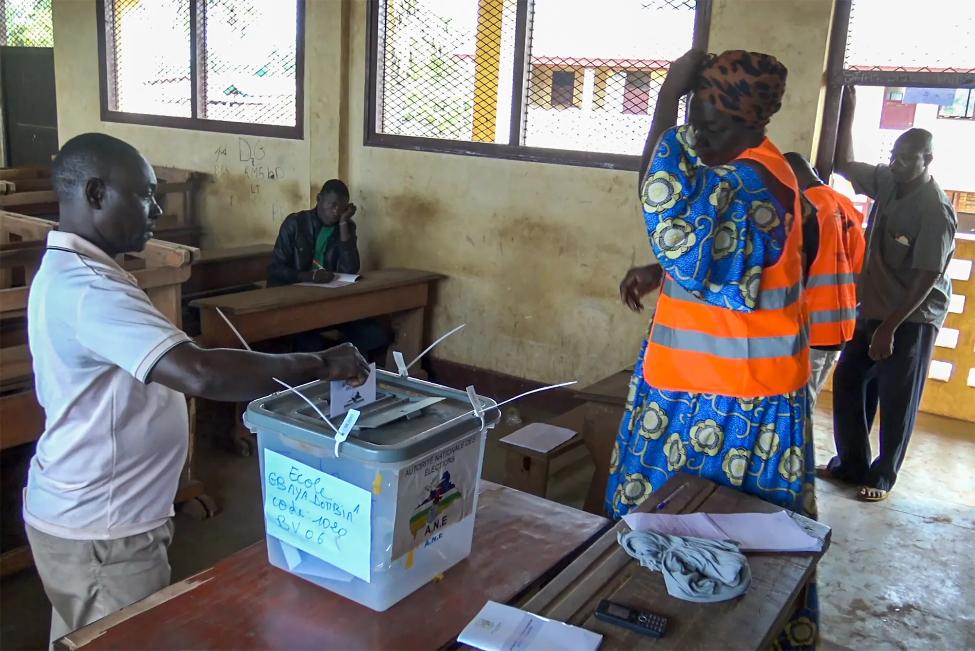 In this image taken from video, a man casts his vote in Bangui, Central African Republic, Sunday July 30, 2023. The Central African Republic went to the polls on Sunday in a highly anticipated vote on a new constitution, which would remove presidential term limits. (Photo by AP Photo/Stringer)