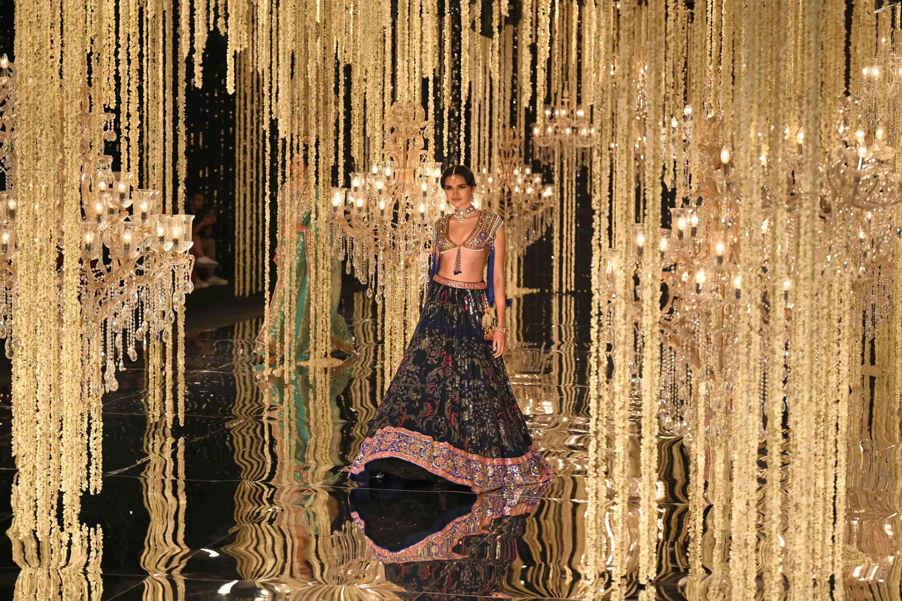 A model presents a creation by designer Suneet Varma during the FDCI India Couture Week in New Delhi on July 26, 2023. (Photo by Money Sharma/AFP Photo)