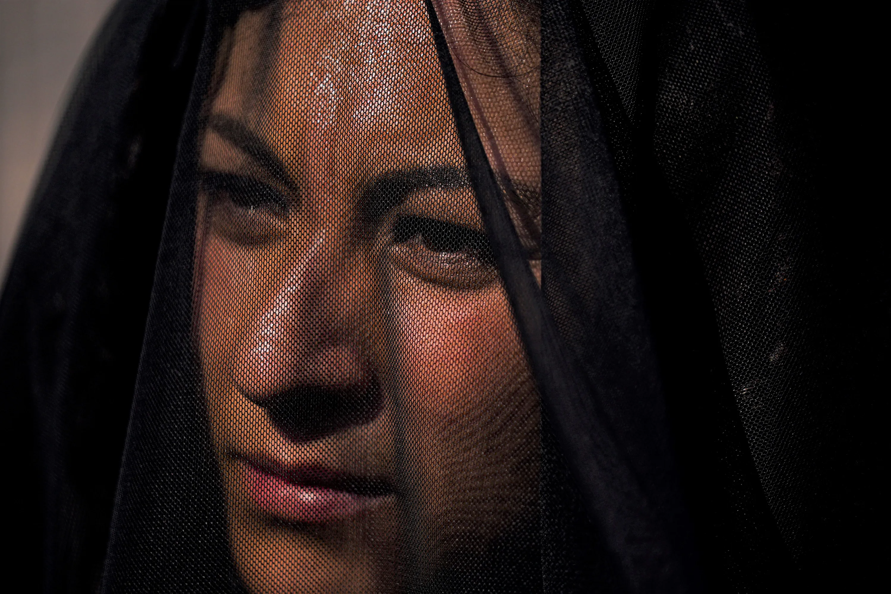 A demonstrator wearing a black veil attends a protest event coined a national mourning against femicides in the Zocalo of Mexico City, Wednesday, May 18, 2022. Other protesters carried red crosses that reads in Spanish “Justice!”. (Photo by Fernando Llano/AP Photo)