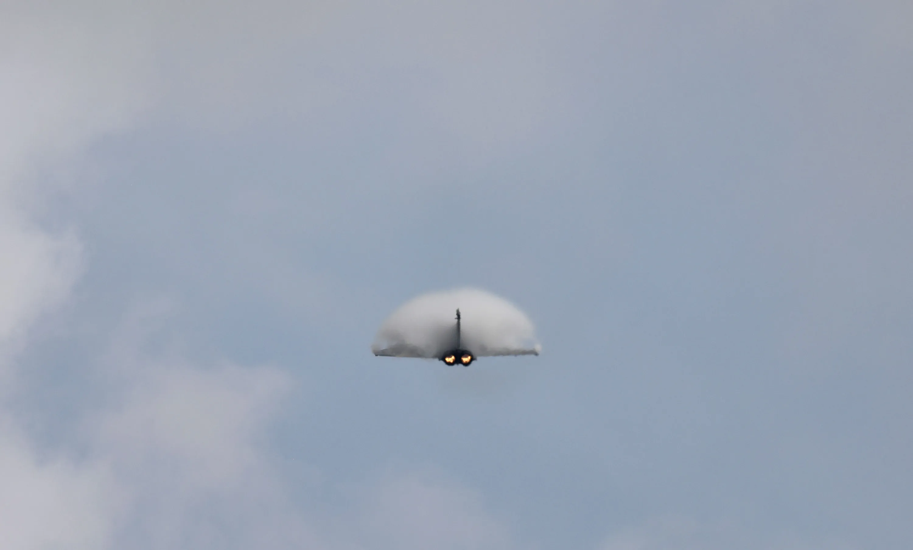 A French multirole fighter aircraft Dassault Rafale airborne during the International Paris Air Show at the Paris–Le Bourget Airport, in Le Bourget, France, 19 June 2023. French President Emmanuel Macron attended the Paris Air Show which returns after a four-year hiatus. (Photo by Ludovic Marin/Pool via EPA)