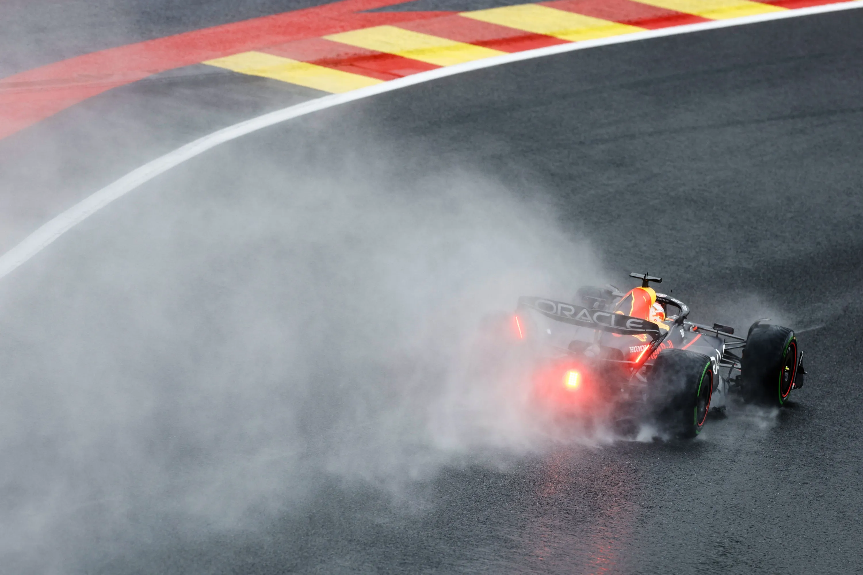 Red Bull Racing's Dutch driver Max Verstappen competes during the qualifying session of the Formula One Belgian Grand Prix at the Spa-Francorchamps Circuit in Spa on July 28, 2023. (Photo by Kenzo Tribouillard/AFP Photo)