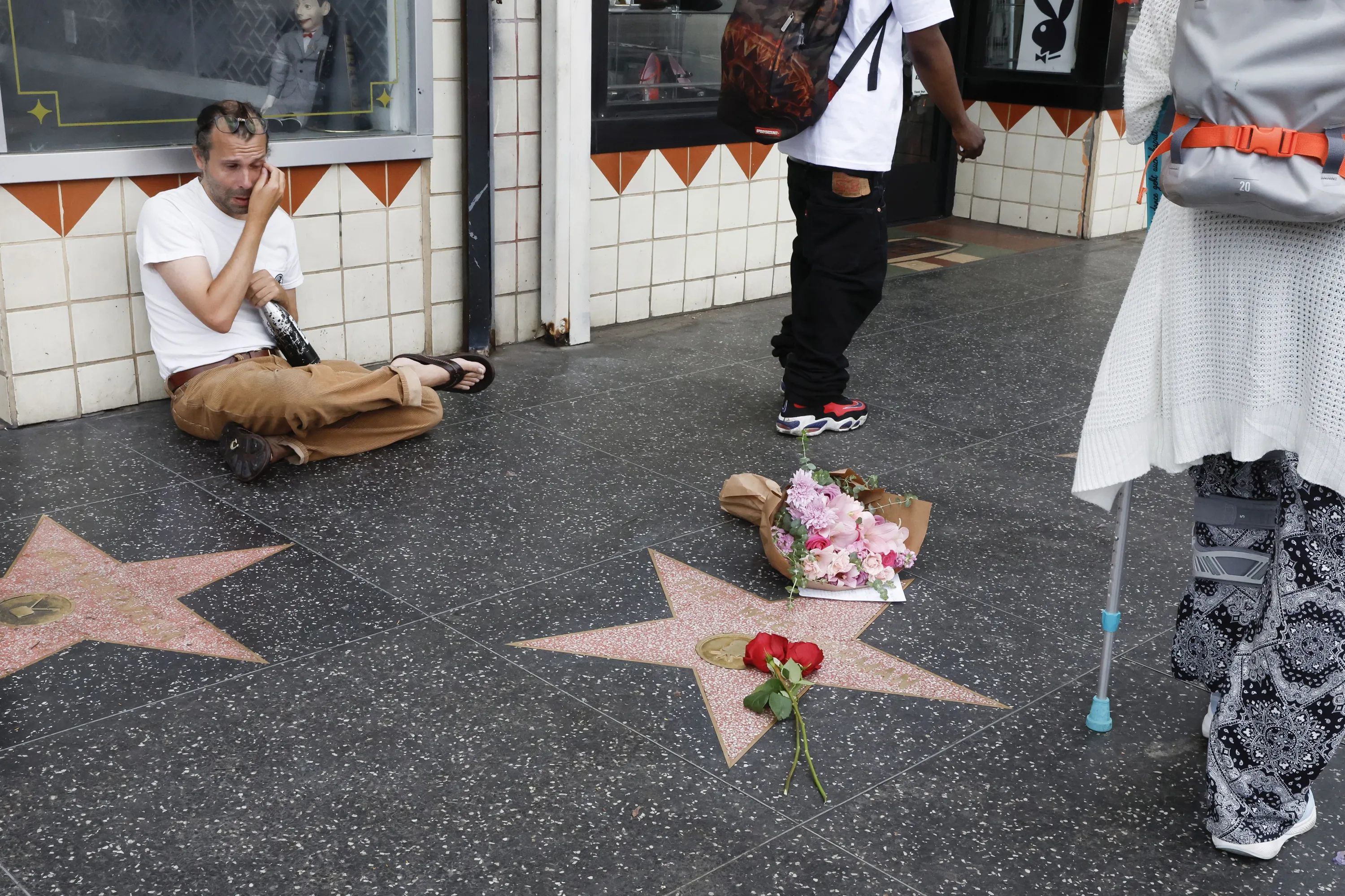 Ryan McDuffie cries while sitting next to Pee-wee Herman's star, a character played by US actor Paul Reubens, in Los Angeles, California, USA, 31 July 2023. Actor Paul Reubens passed away on 30 July 2023 at the age of 70, years after being diagnosed with cancer. (Photo by Caroline Brehman/EPA)