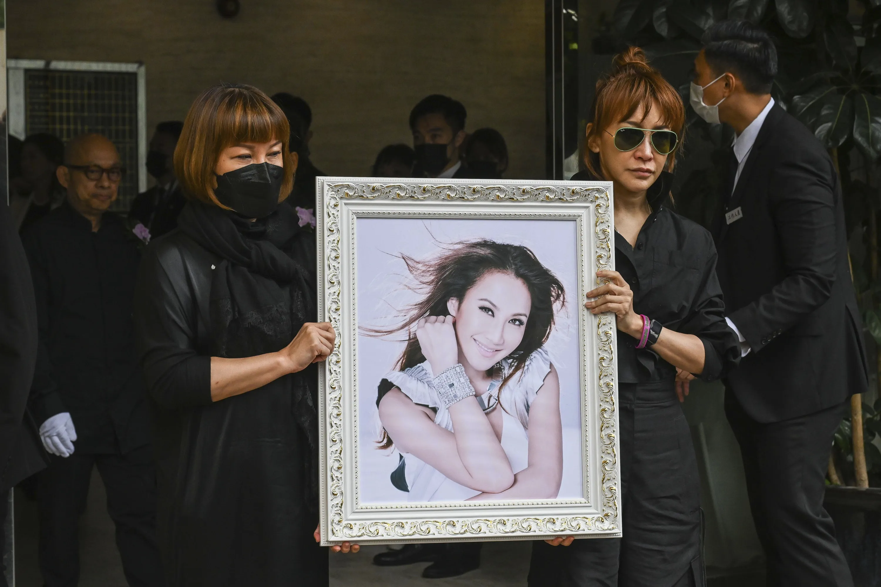 Relatives hold a photo of Coco Lee after her funeral in Hong Kong, Tuesday, August 1, 2023. Lee was being mourned by family and friends at a private ceremony Tuesday a day after fans paid their respects at a public memorial for the Hong Kong-born entertainer who had international success. (Photo by Billy H.C. Kwok/AP Photo)