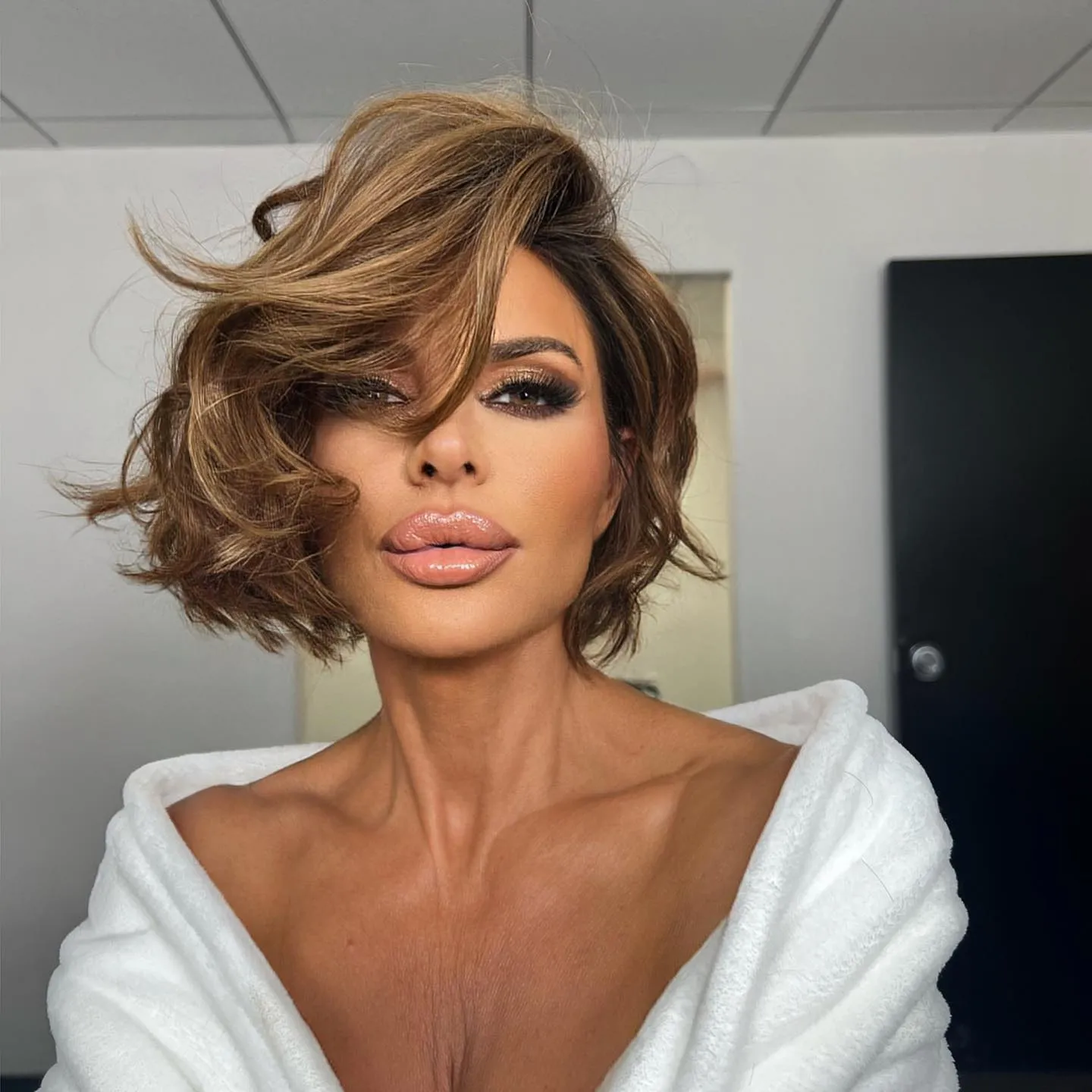 American actress, television personality and model Lisa Rinna teases her makeup line with a sеxy shot in the second decade of July 2023. (Photo by lisarinna/Instagram)