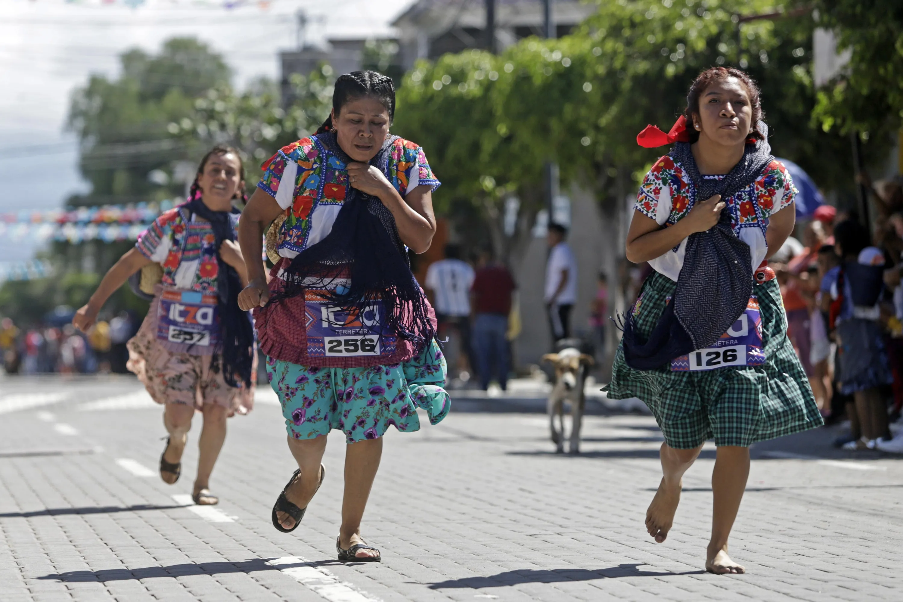 Mexican women participate in the 29th edition of the traditional “Tortilla Race” in the village of Santa Maria Coapan, Mexico, 06 August 2023. During the race, women wear traditional dresses and run some 6 km carrying 15kg of tortillas. (Photo by Hilda Ríos/EPA/EFE)