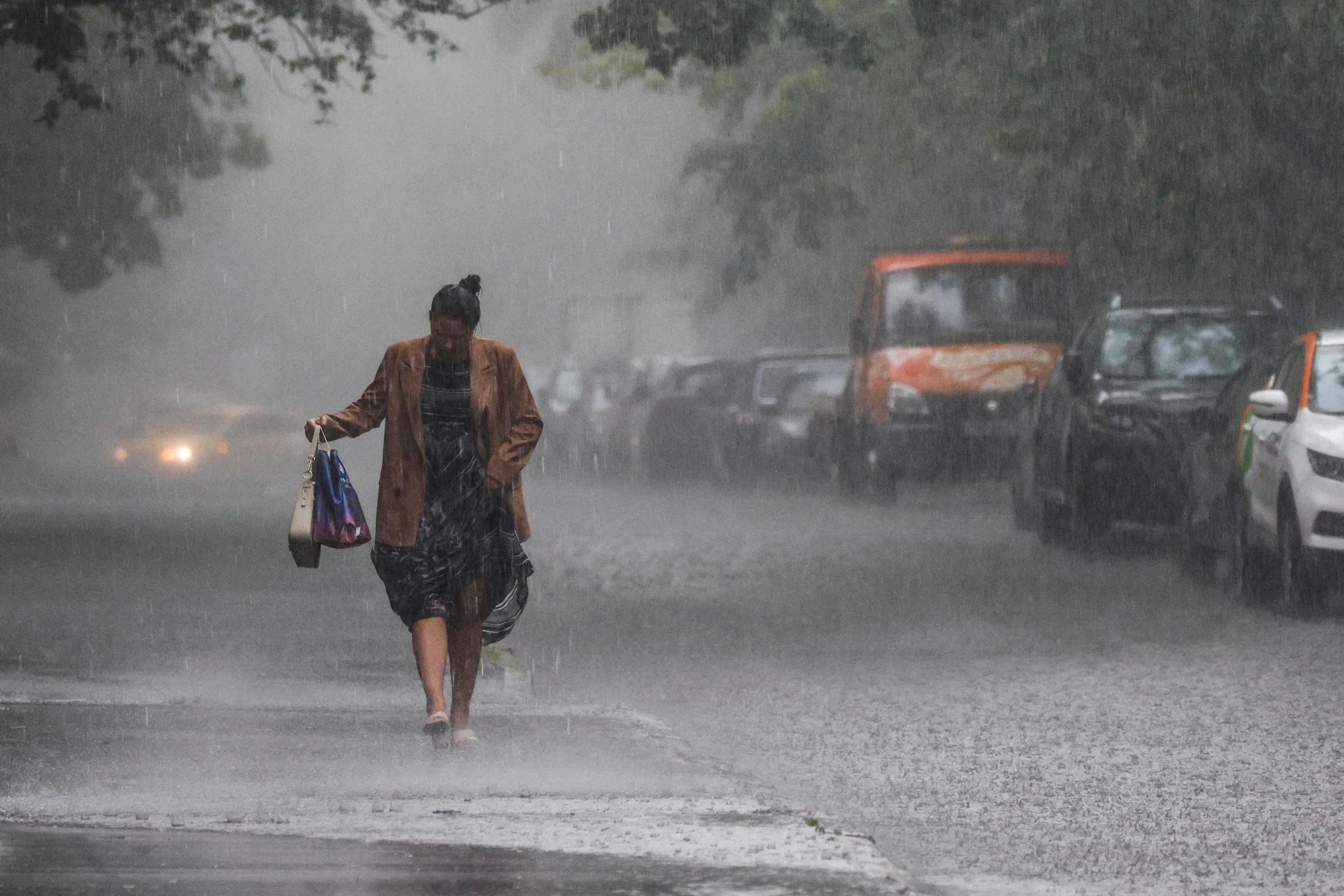A woman walks along a flooded street during a heavy rain in Moscow, Russia on July 26, 2023. (Photo by Maxim Shemetov/Reuters)