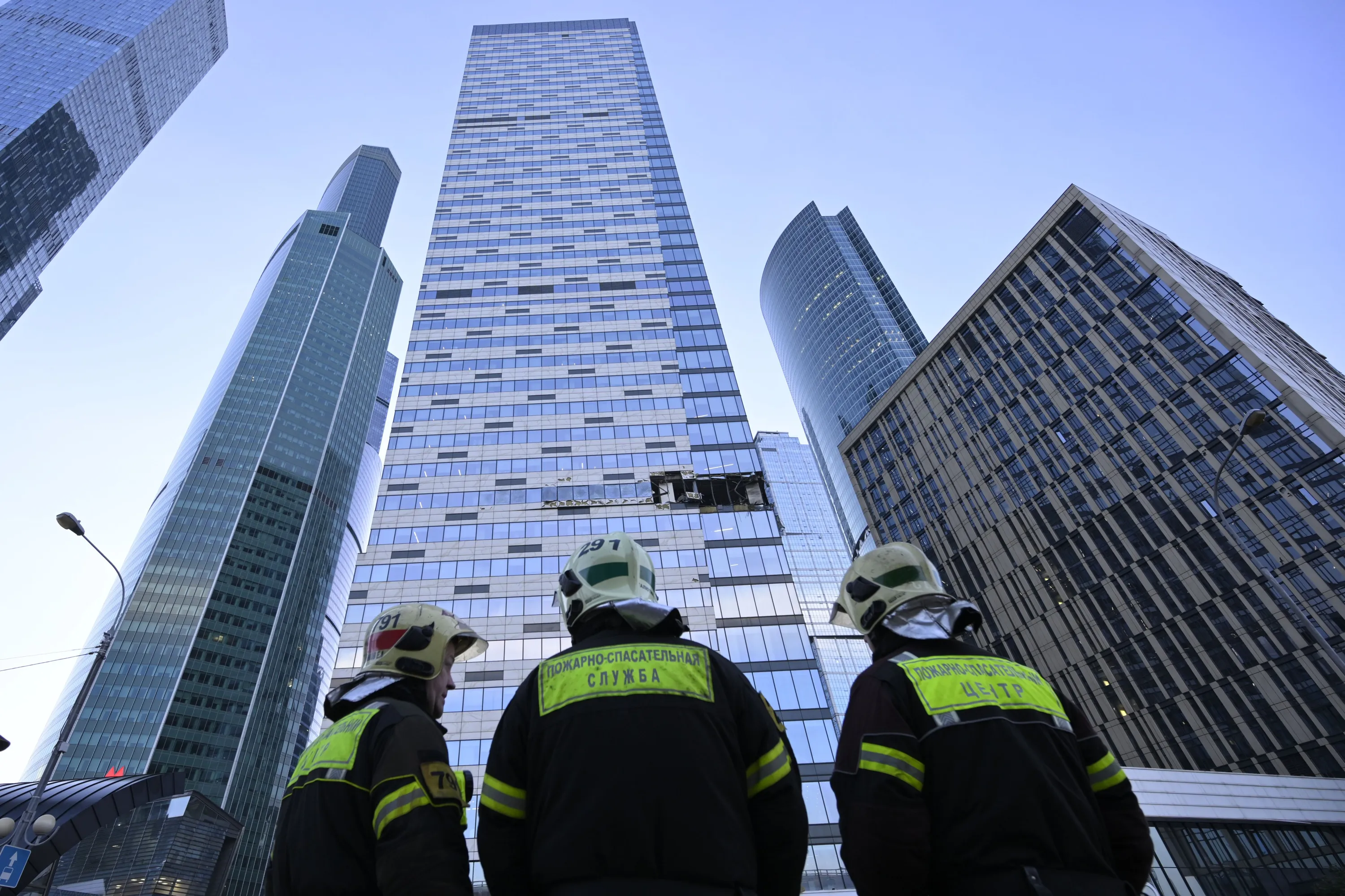 A view of the damaged skyscraper in the “Moscow City” business district after a reported drone attack in Moscow, Russia, early Sunday, July 30, 2023. (Photo by AP Photo/Stringer)