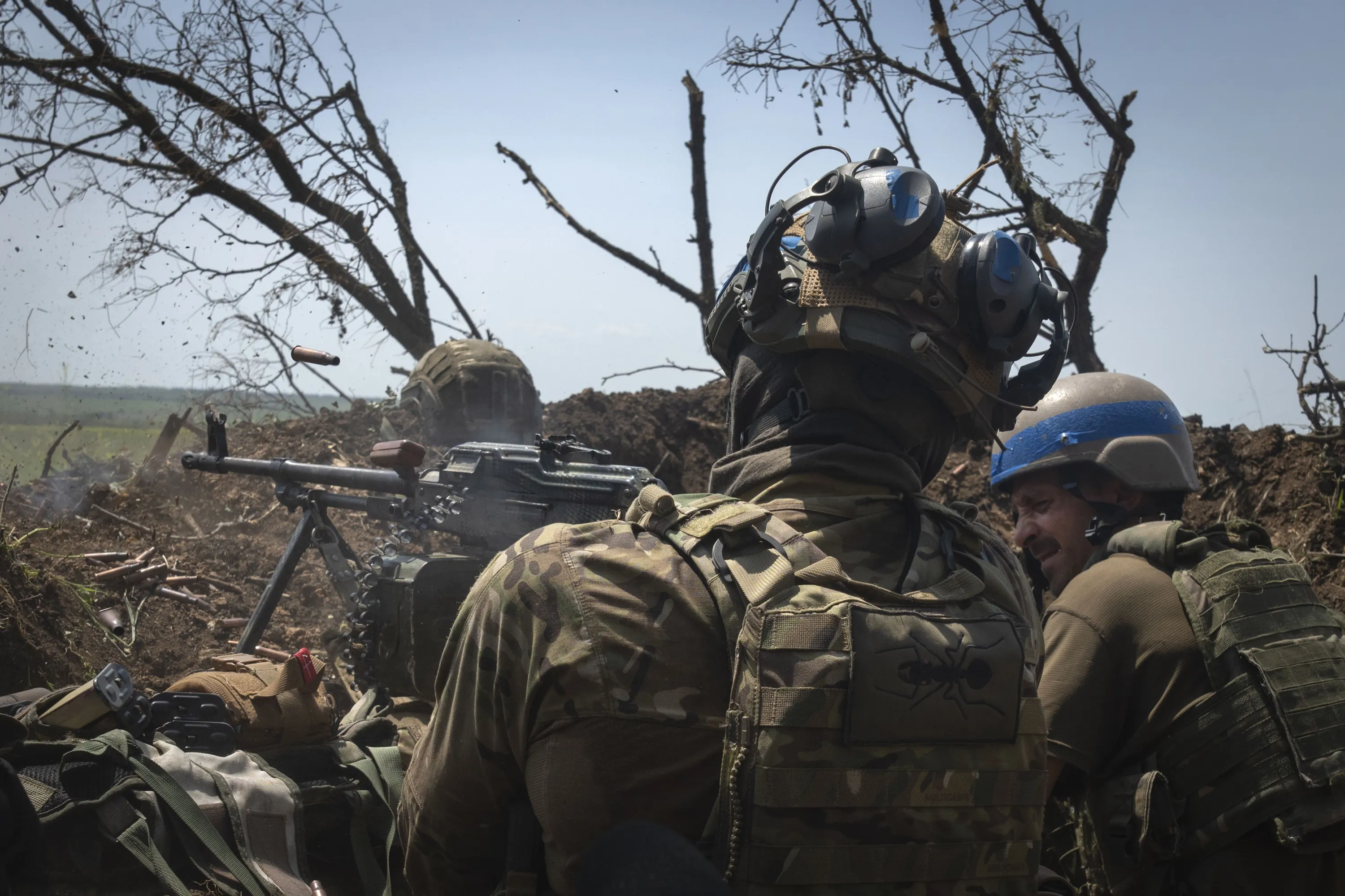 Ukrainian soldiers fire toward Russian position from a trench on the frontline in Zaporizhzhia region, Ukraine, Friday, June 23, 2023. Battles are also raging along the southern front in Zaporizhzhia, where Ukrainian forces are making minimal gains and coming up against formidable Russian fortifications. (Photo by Efrem Lukatsky/AP Photo)