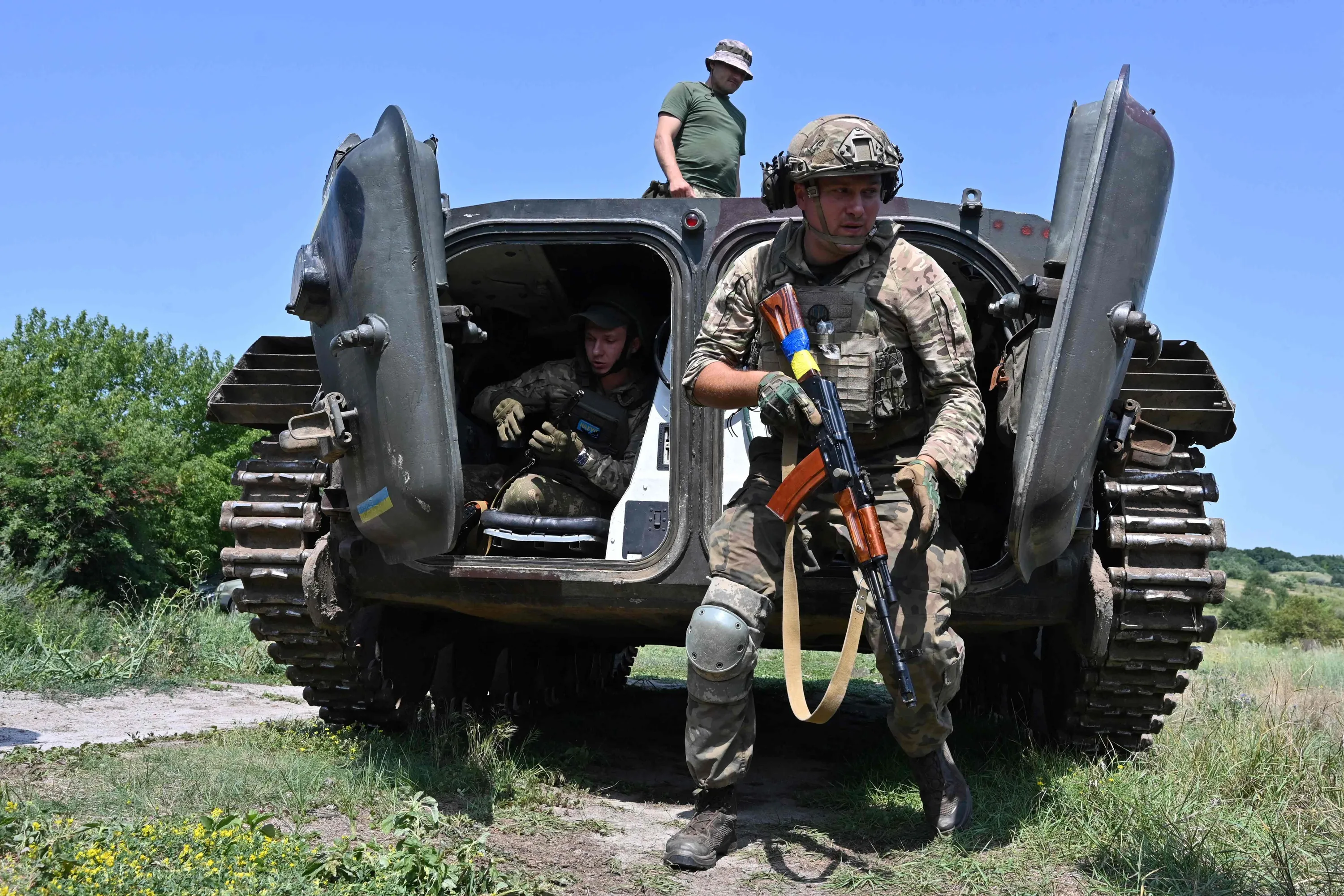 Platoon commanders of Ukraine's National Guard take part in a military training in Kharkiv region, on July 26, 2023. (Photo by Sergey Bobok/AFP Photo)
