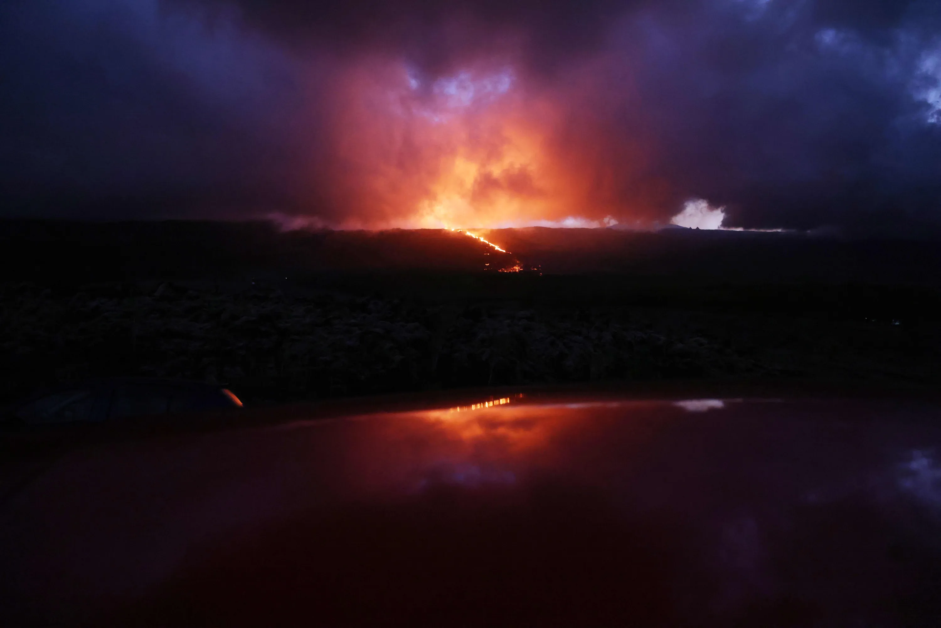 This picture taken on July 3, 2023 shows the eruption of the Piton de la Fournaise volcano on the La Reunion island. (Photo by Richard Bouhet/AFP Photo)