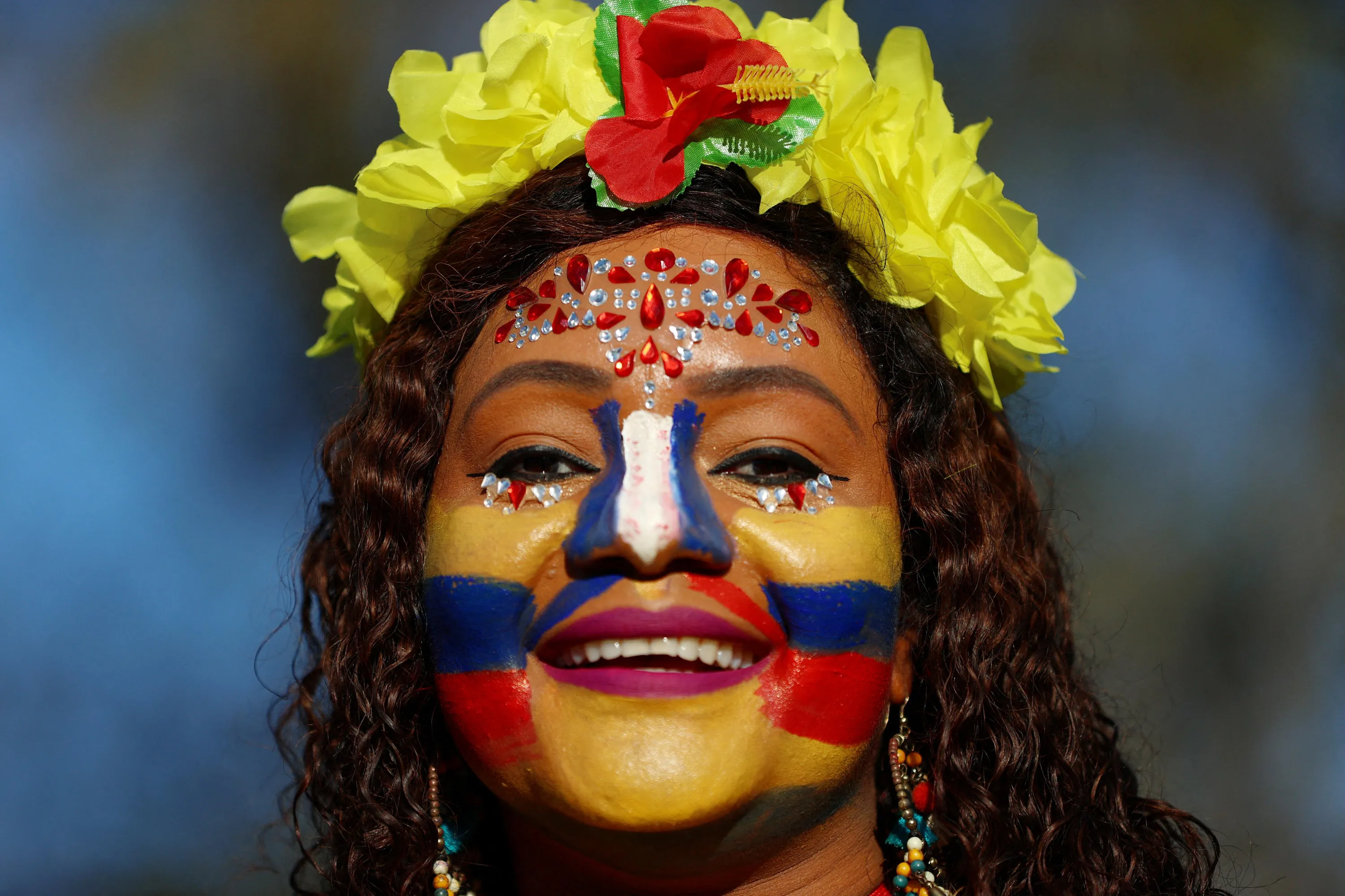A Colombia fan inside the stadium before their match against Morocco in the Women's World Cup in Perth, Australia on August 3, 2023. (Photo by Luisa Gonzalez/Reuters)