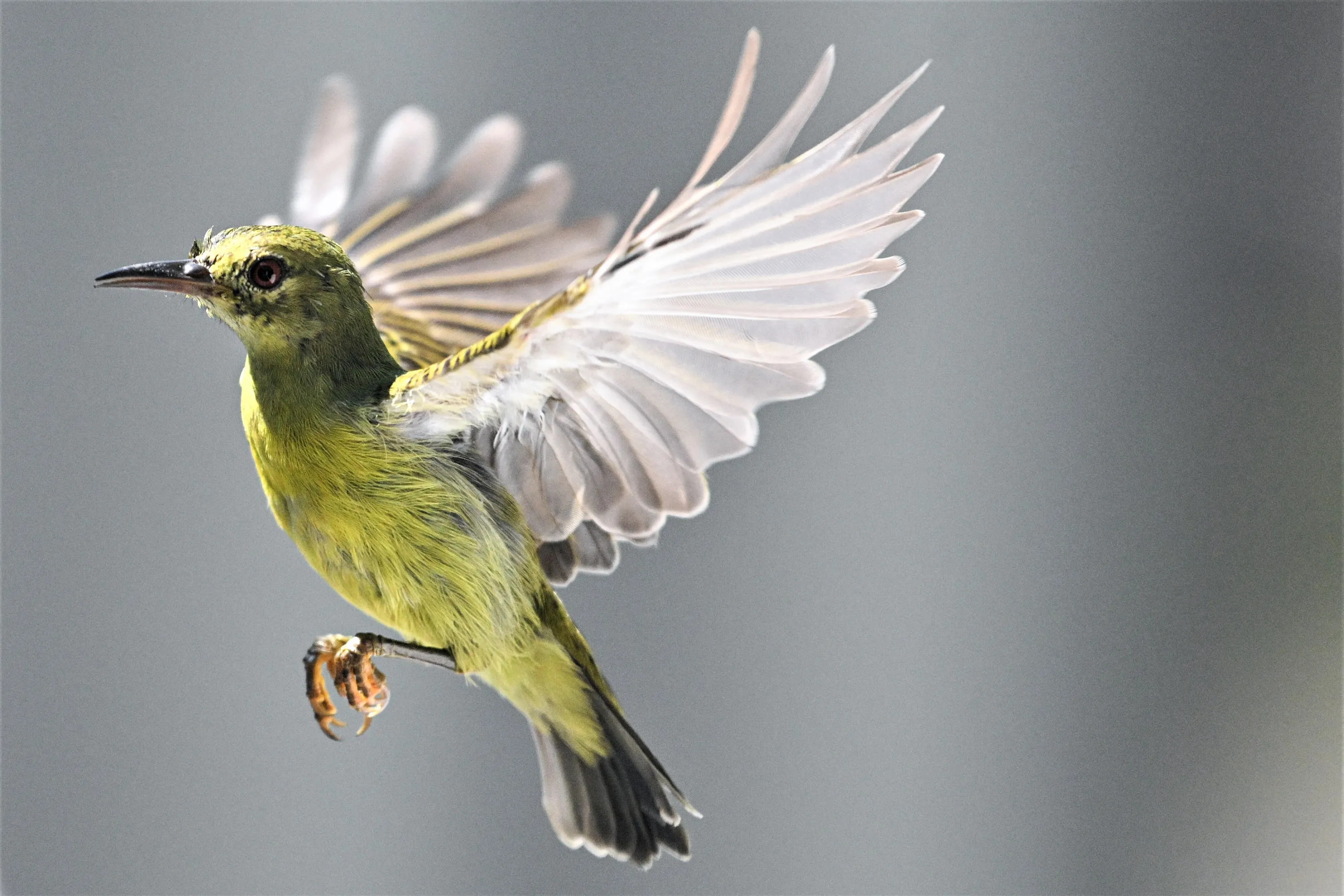 A lesser green leafbird flies over a tree in Karak, in Malaysia's Pahang state, on August 11, 2023. (Photo by Mohd Rasfan/AFP Photo)