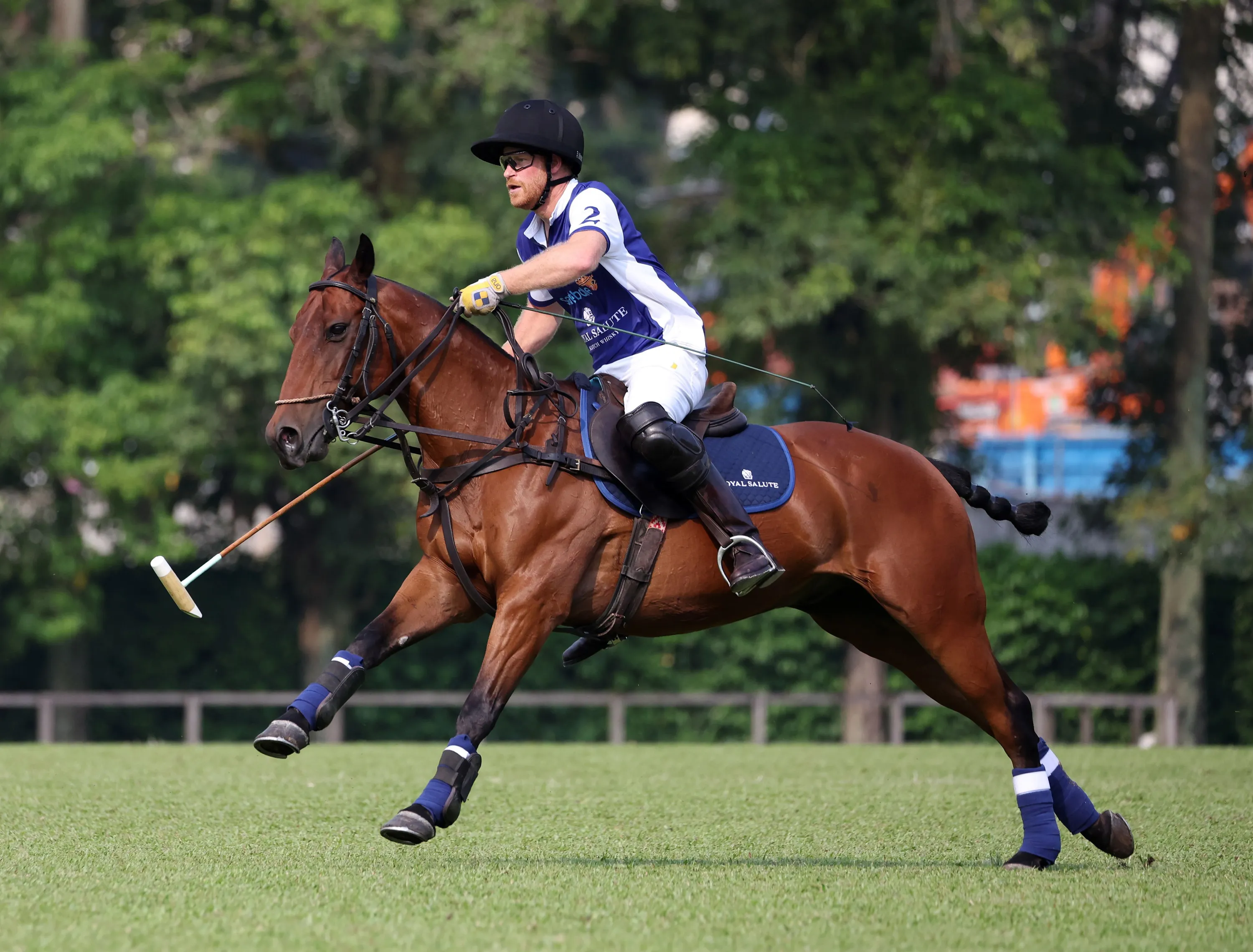Prince Harry, The Duke of Sussex, in action at the 2023 Sentebale ISPS Handa Polo Cup charity polo match, at the Singapore Polo Club in Singapore, 12 August 2023. (Photo by How Hwee Young/EPA)